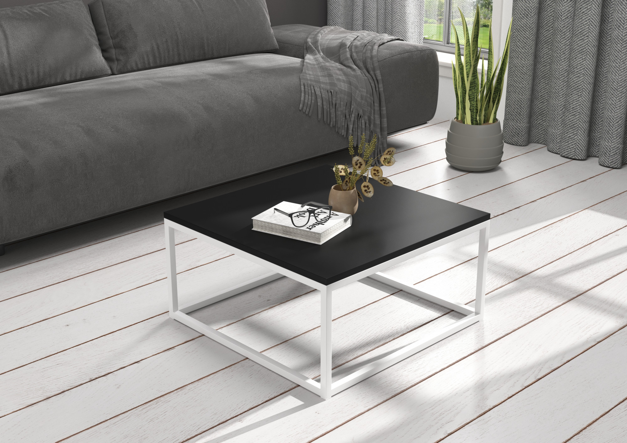 BELTEN dohányzóasztal 65x65 Fehér+Fekete