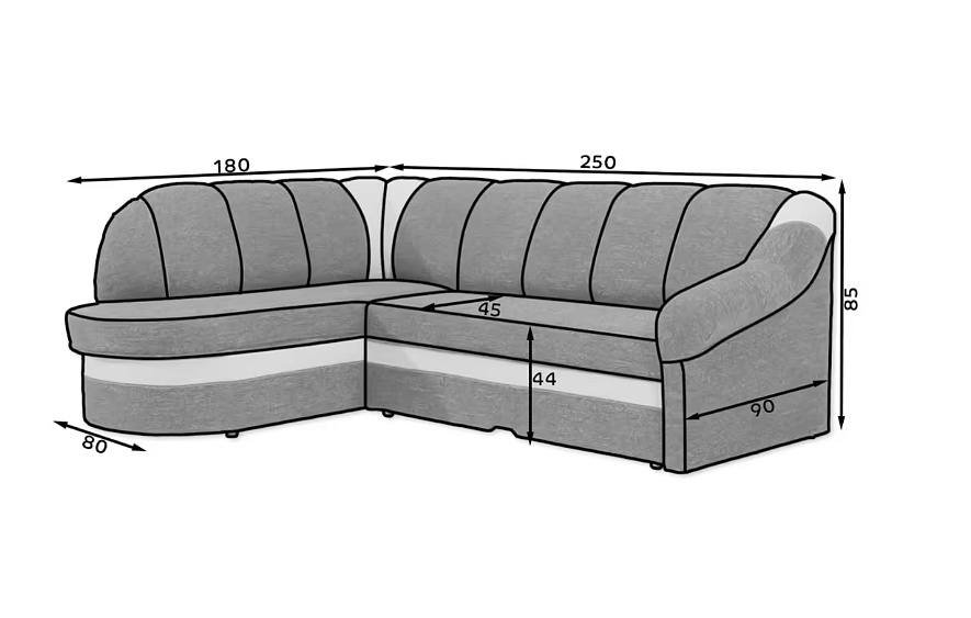 Benano is a simple in form, but original corner unit with dimensions of 250x180x85 cm in a slightly modernist style. Our corner sofa bed is a multifunctional piece of furniture, because apart from a spacious sofa for relaxing during the day, it can also be used as a place to regenerate and relaxduring the night - it can certainly be a suitable place to sleep. Thanks to the dolphin-type mechanism - we can easily and quickly turn an everyday sofa into a comfortable bed with an area of 195 x 125 cm. A large storage compartment for bedding in the ottoman will help us return to the function of a comfortable seat. The wave spring and soft T30 foam, which is resistant to both damage anddeformation, are responsible for exceptional comfort and convenience. When choosing Benano as a corner unit for your living room - it is worth paying attention not only to its streamlined, simple shape and classic shape, but also to elegant and modern stitching.