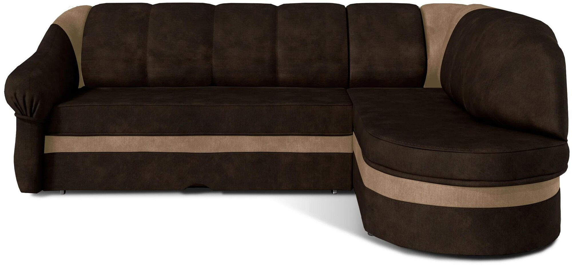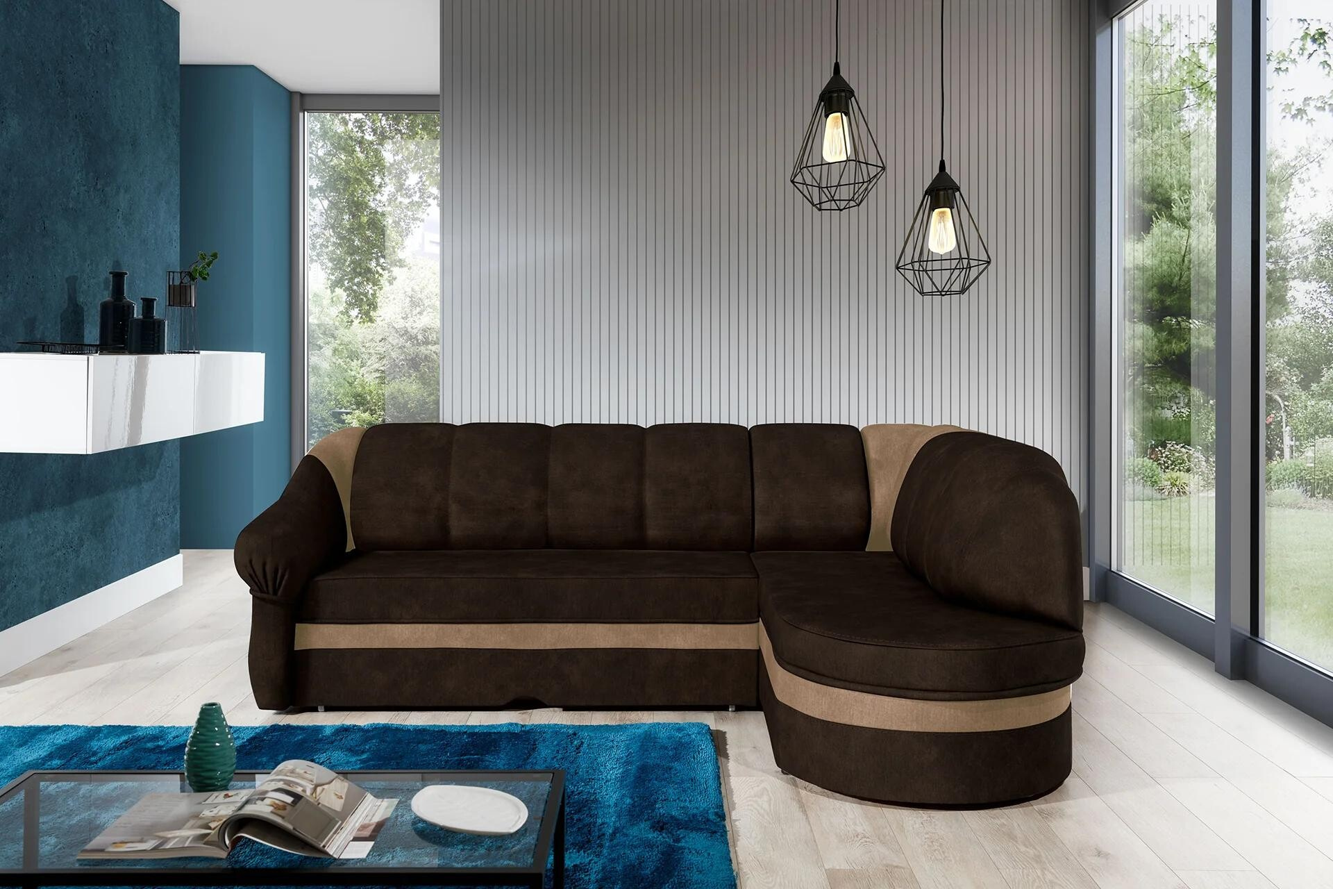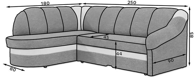 Benano is a simple in form, but original corner unit with dimensions of 250x180x85 cm in a slightly modernist style. Our corner sofa bed is a multifunctional piece of furniture, because apart from a spacious sofa for relaxing during the day, it can also be used as a place to regenerate and relaxduring the night - it can certainly be a suitable place to sleep. Thanks to the dolphin-type mechanism - we can easily and quickly turn an everyday sofa into a comfortable bed with an area of 195 x 125 cm. A large storage compartment for bedding in the ottoman will help us return to the function of a comfortable seat. The wave spring and soft T30 foam, which is resistant to both damage anddeformation, are responsible for exceptional comfort and convenience. When choosing Benano as a corner unit for your living room - it is worth paying attention not only to its streamlined, simple shape and classic shape, but also to elegant and modern stitching.