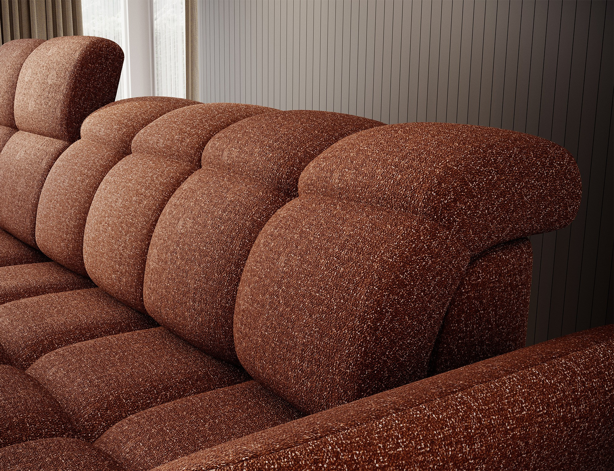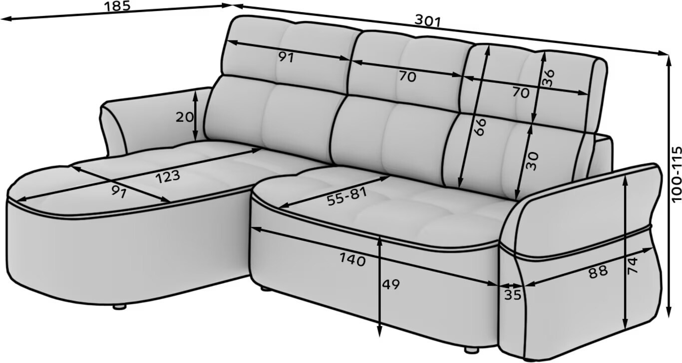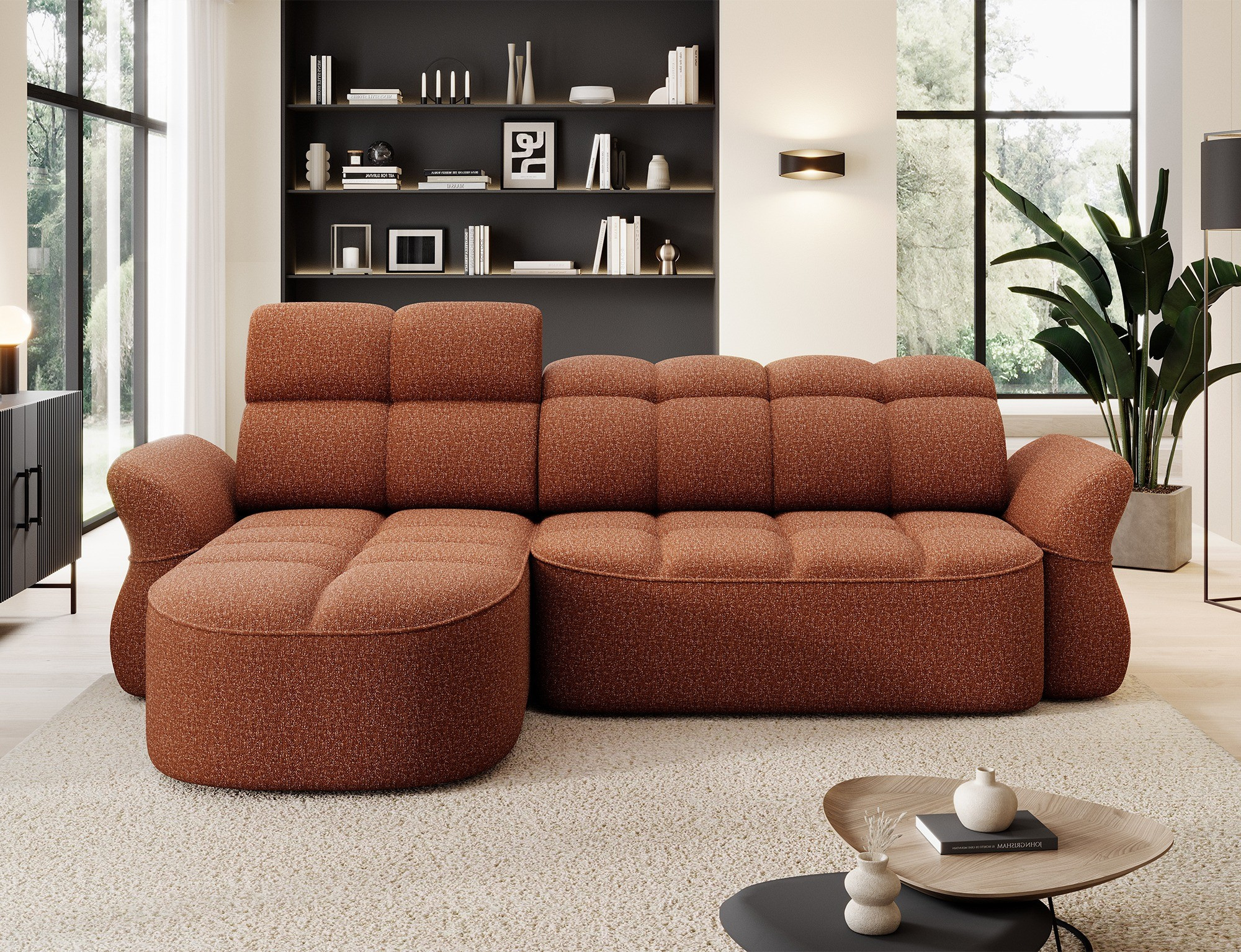 The Beneth corner sofa is the perfect blend of modern design and supreme comfort. Its spacious seat, filled with B-type wave springs and high-resilience HR3030 foam, offers the ideal balance between softness and support. The backrest, featuring an upholstery belt and T2315 polyurethane foam, adapts to your posture for ultimate relaxation. But Beneth is not just about looks – it’s packed with functionality. It comes with a sleeping function and a storage compartment, while the electric seat extension allows you to adjust the depth effortlessly. The fully upholstered back makes it a stunning centerpiece from every angle, and its sleek black plastic legs add a touch of lightness and modern elegance.