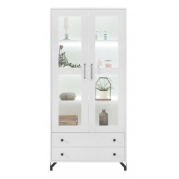BERGEN Vitrin - BE2, Fehér Lux + Fehér magasfényű