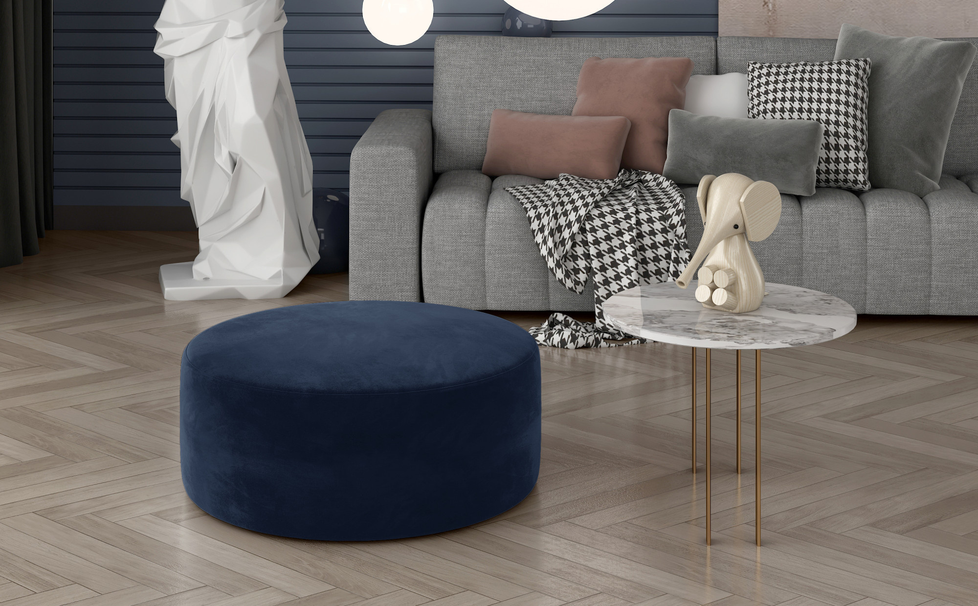 Bero is a chic round pouf that will fit perfectly into the interior of any apartment. The width of the product is 75 cm, and its height is 42 cm. This multifunctional piece of furniture, due to its shape and size, can be used as a table or footstool. On the one hand, it can be an individual piece of interior design, and on the other - it can also be a complement to it. The comfortable, spacious seat is created from high-quality HR foam, which affects the positive sensations of softness resulting from the use of the furniture. Bero is available in a wide range of fabric colors, so you have the opportunity to adjust it to your own preferences. Our pouffe is a piece of furniture that will serve for years.