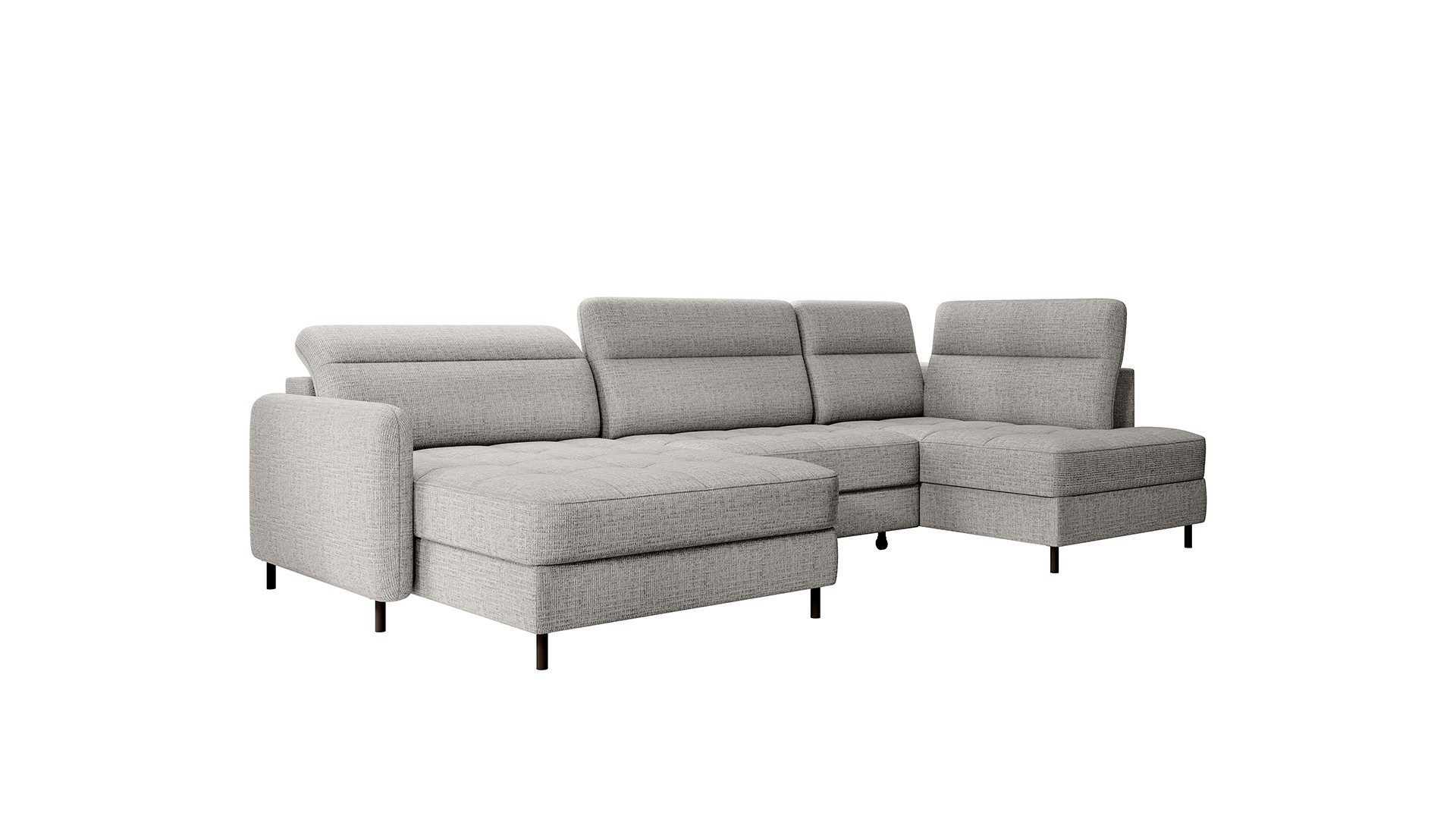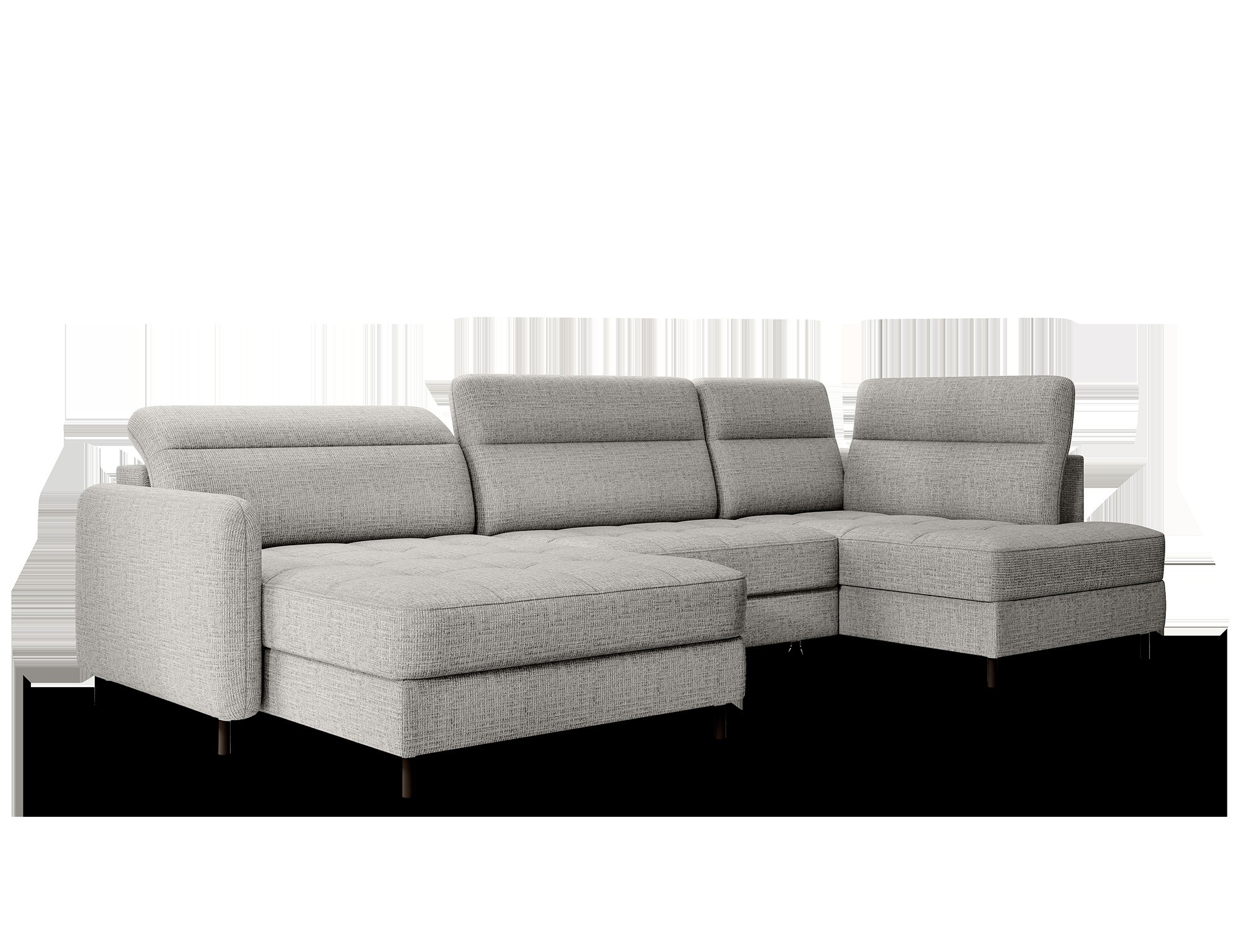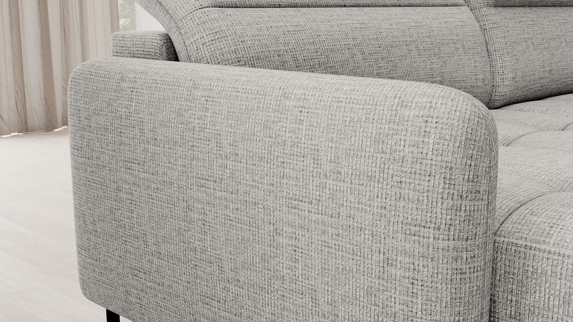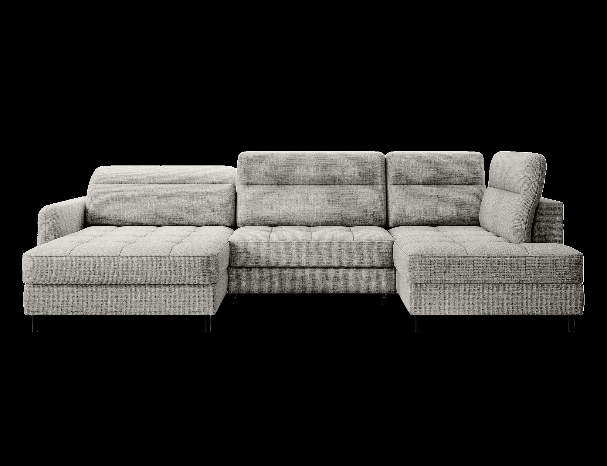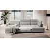 The Berrto corner sofa is an incredibly refined piece of furniture for your living room, designed to provide you with exceptional comfort and functionality. This elegant corner sofa combines modern design with the use of high-quality components. The Berrto corner sofa is equipped with wave springs of type B, which, in combination with high-elastic HR + T2130 foam, create a surface of unparalleled comfort. This piece of furniture is soft, flexible, and perfectly conforms to your body's shape, providing not only relaxation but also muscle relief. The use of upholstery straps and T2130 foam in the back of the Berrto corner sofa ensures its durability and resistance to deformations. You don't have to worry about unsightly wrinkles - this corner sofa will maintain its original appearance for many years. You can quickly and easily transform it into a comfortable bed, providing you and your guests with a restful night's sleep. Additionally, the corner sofa conceals a spacious storage compartment for bedding, providing ample space for all necessary textiles. The Berrto corner sofa offers not only comfort but also stability. With an impressive weight capacity of 390 kg, you can enjoy it for many years without worrying about its durability. The Berrto corner sofa stands out not only for its functionality but also for its aesthetic design. The black steel legs give it a modern character, and the elegant design makes it a standout element of your living room decor. The Berrto corner sofa is equipped with an easy-to-use Dolphin-type mechanism, allowing you to quickly transform it into a comfortable bed. This is the ideal solution when you need a sleeping space for guests. The Berrto corner sofa combines luxury, comfort, and functionality. Its high-quality craftsmanship and meticulous finishing make it not only the focal point of your living room but also a place for relaxation and spending time with friends and family.