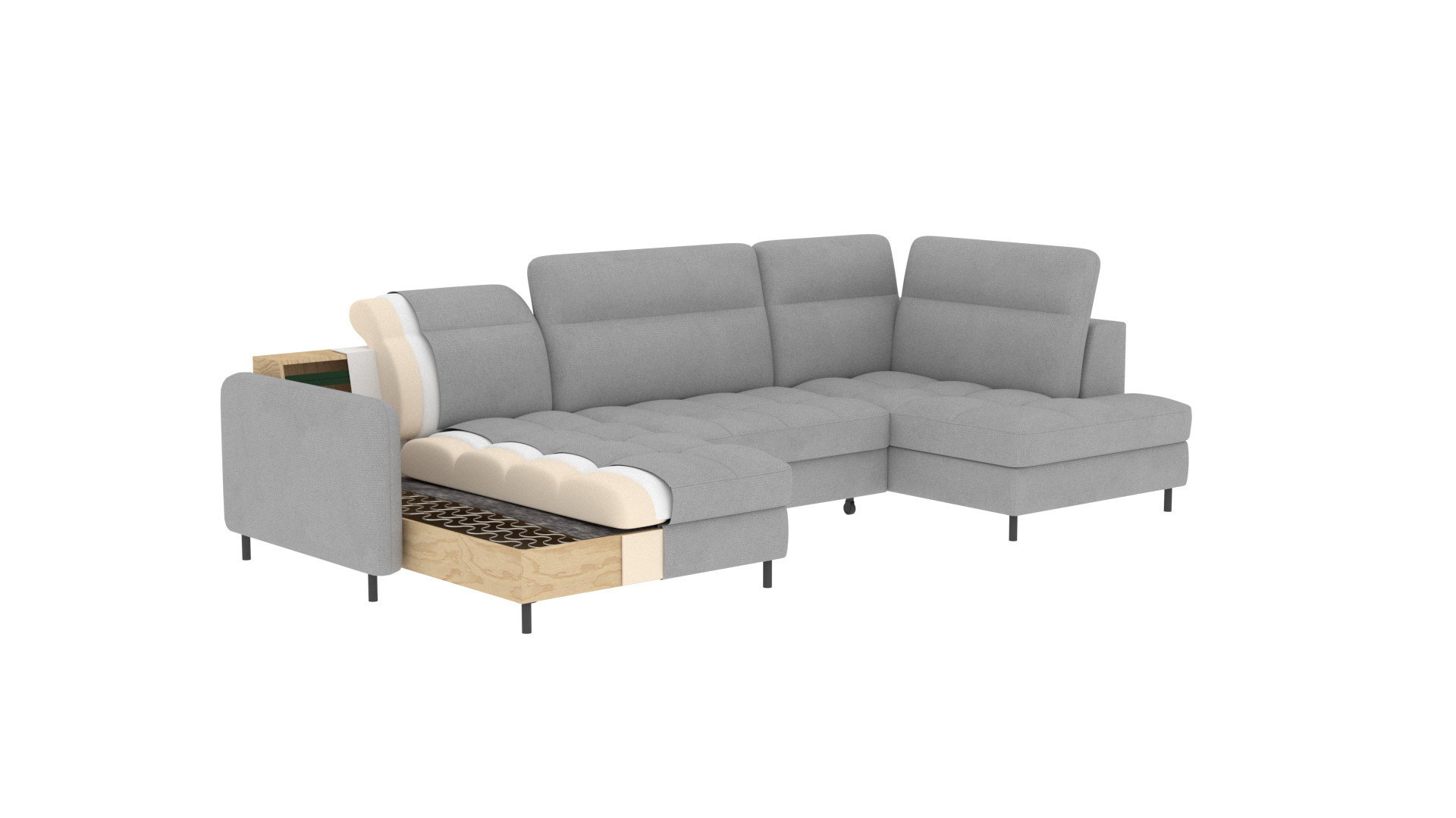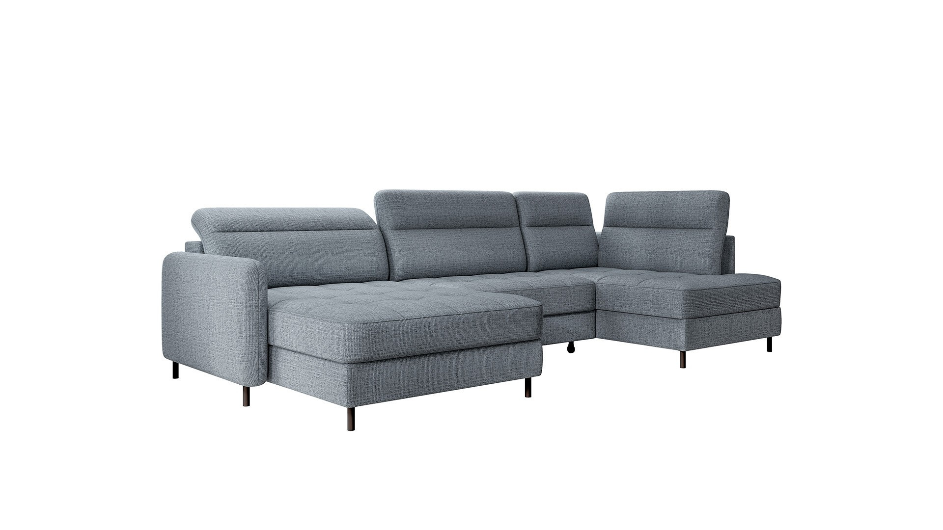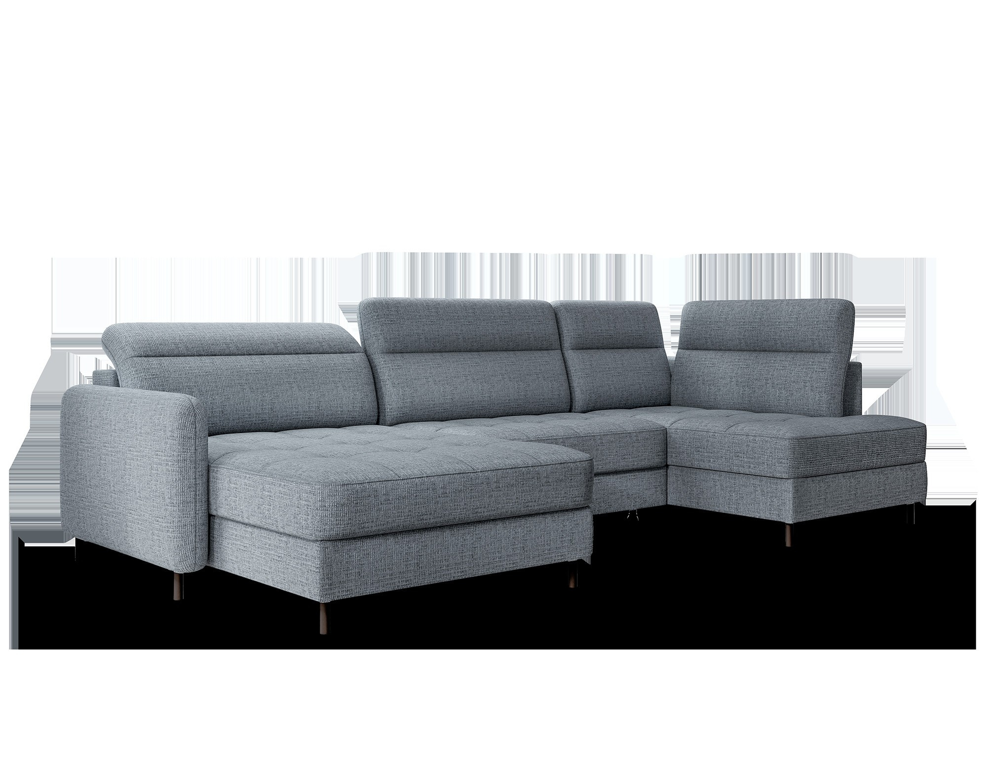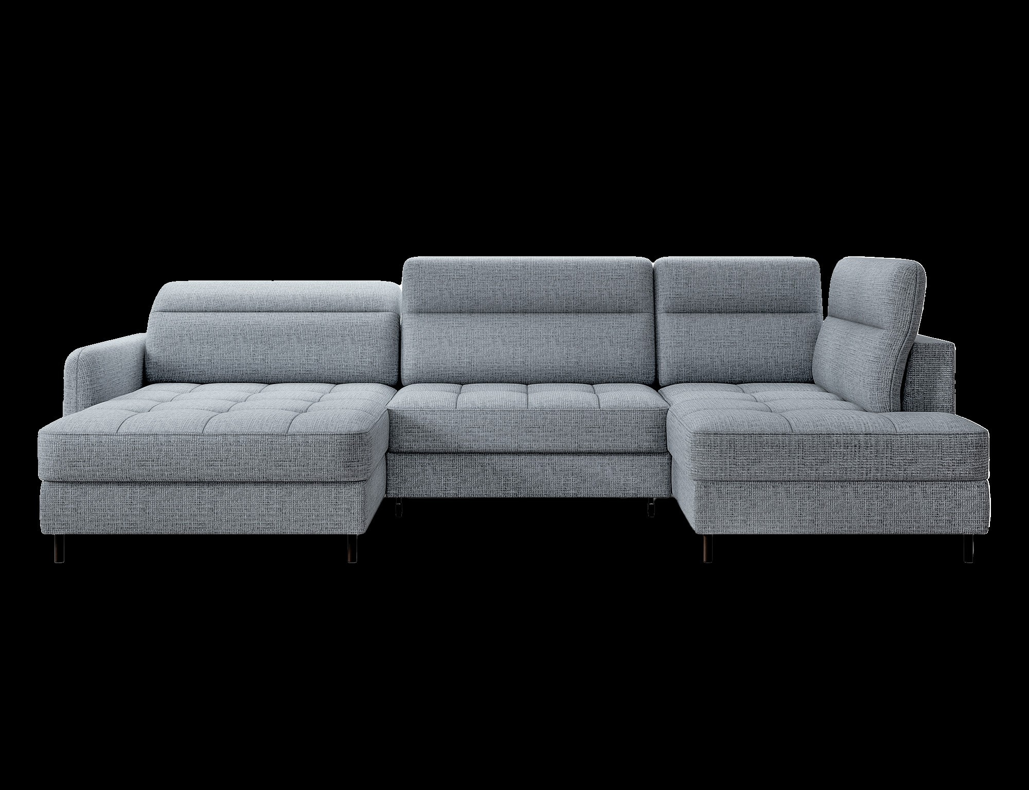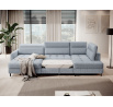 The Berrto corner sofa is an incredibly refined piece of furniture for your living room, designed to provide you with exceptional comfort and functionality. This elegant corner sofa combines modern design with the use of high-quality components. The Berrto corner sofa is equipped with wave springs of type B, which, in combination with high-elastic HR + T2130 foam, create a surface of unparalleled comfort. This piece of furniture is soft, flexible, and perfectly conforms to your body's shape, providing not only relaxation but also muscle relief. The use of upholstery straps and T2130 foam in the back of the Berrto corner sofa ensures its durability and resistance to deformations. You don't have to worry about unsightly wrinkles - this corner sofa will maintain its original appearance for many years. You can quickly and easily transform it into a comfortable bed, providing you and your guests with a restful night's sleep. Additionally, the corner sofa conceals a spacious storage compartment for bedding, providing ample space for all necessary textiles. The Berrto corner sofa offers not only comfort but also stability. With an impressive weight capacity of 390 kg, you can enjoy it for many years without worrying about its durability. The Berrto corner sofa stands out not only for its functionality but also for its aesthetic design. The black steel legs give it a modern character, and the elegant design makes it a standout element of your living room decor. The Berrto corner sofa is equipped with an easy-to-use Dolphin-type mechanism, allowing you to quickly transform it into a comfortable bed. This is the ideal solution when you need a sleeping space for guests. The Berrto corner sofa combines luxury, comfort, and functionality. Its high-quality craftsmanship and meticulous finishing make it not only the focal point of your living room but also a place for relaxation and spending time with friends and family.
