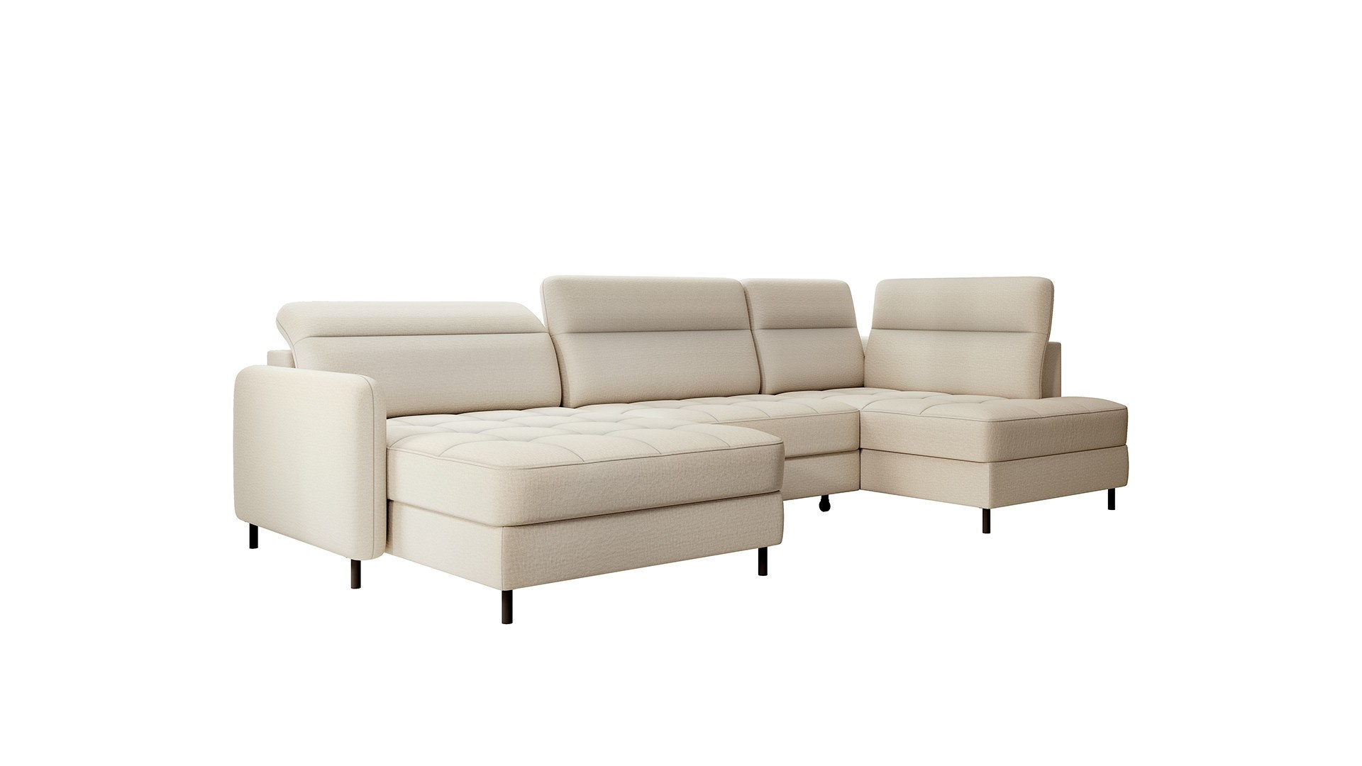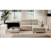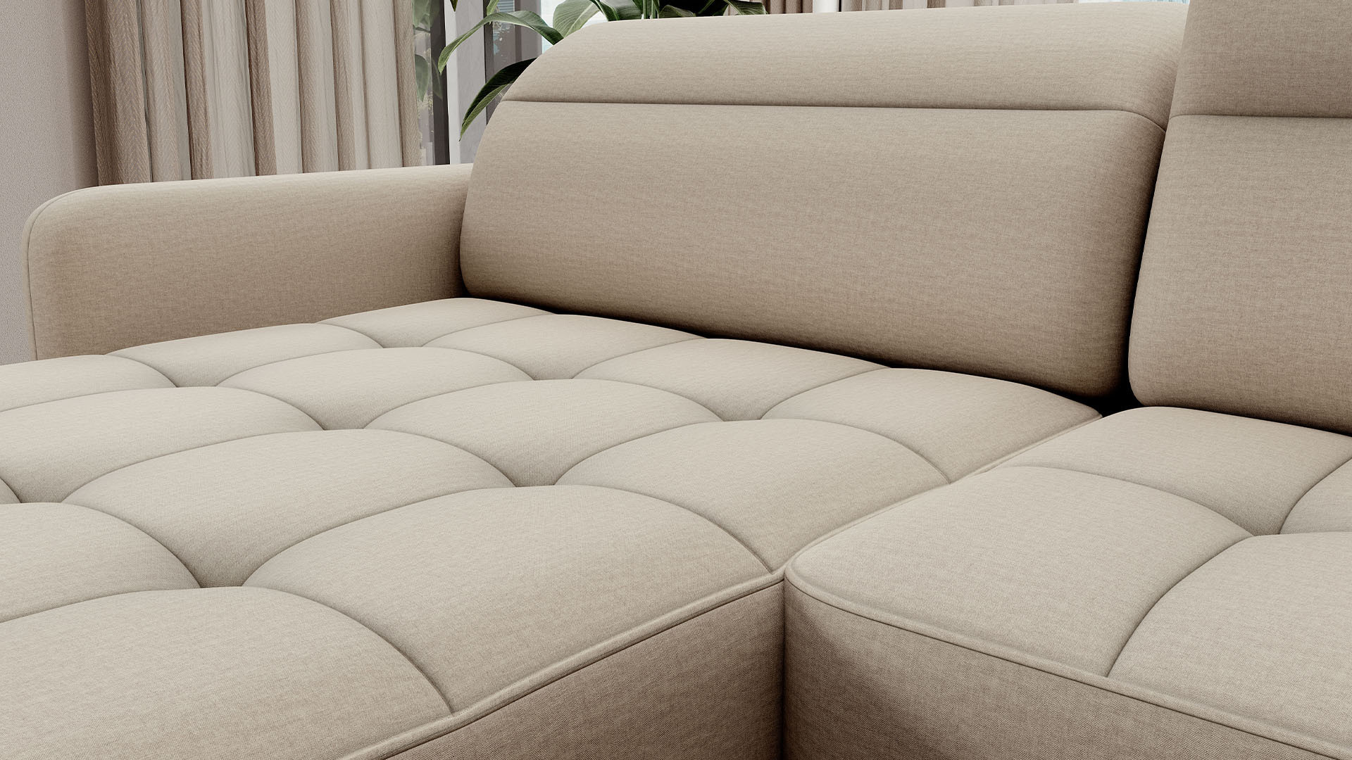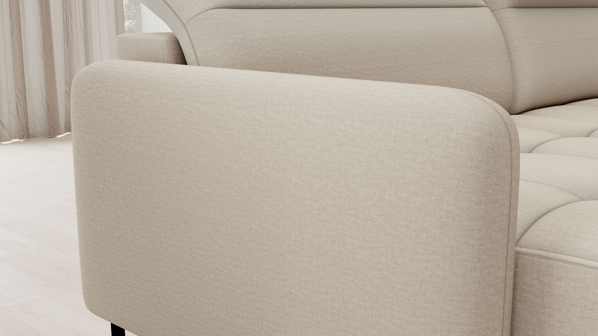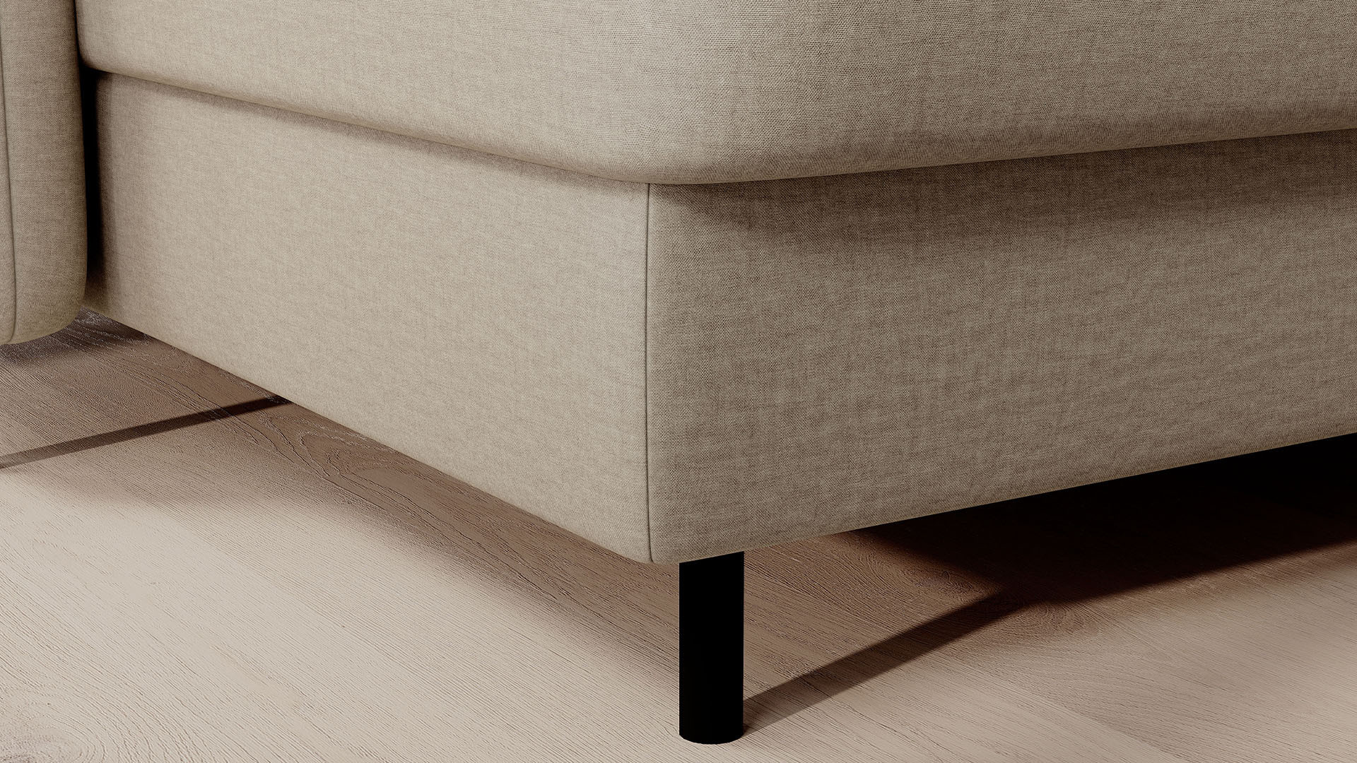 The Berrto corner sofa is an incredibly refined piece of furniture for your living room, designed to provide you with exceptional comfort and functionality. This elegant corner sofa combines modern design with the use of high-quality components. The Berrto corner sofa is equipped with wave springs of type B, which, in combination with high-elastic HR + T2130 foam, create a surface of unparalleled comfort. This piece of furniture is soft, flexible, and perfectly conforms to your body's shape, providing not only relaxation but also muscle relief. The use of upholstery straps and T2130 foam in the back of the Berrto corner sofa ensures its durability and resistance to deformations. You don't have to worry about unsightly wrinkles - this corner sofa will maintain its original appearance for many years. You can quickly and easily transform it into a comfortable bed, providing you and your guests with a restful night's sleep. Additionally, the corner sofa conceals a spacious storage compartment for bedding, providing ample space for all necessary textiles. The Berrto corner sofa offers not only comfort but also stability. With an impressive weight capacity of 390 kg, you can enjoy it for many years without worrying about its durability. The Berrto corner sofa stands out not only for its functionality but also for its aesthetic design. The black steel legs give it a modern character, and the elegant design makes it a standout element of your living room decor. The Berrto corner sofa is equipped with an easy-to-use Dolphin-type mechanism, allowing you to quickly transform it into a comfortable bed. This is the ideal solution when you need a sleeping space for guests. The Berrto corner sofa combines luxury, comfort, and functionality. Its high-quality craftsmanship and meticulous finishing make it not only the focal point of your living room but also a place for relaxation and spending time with friends and family.