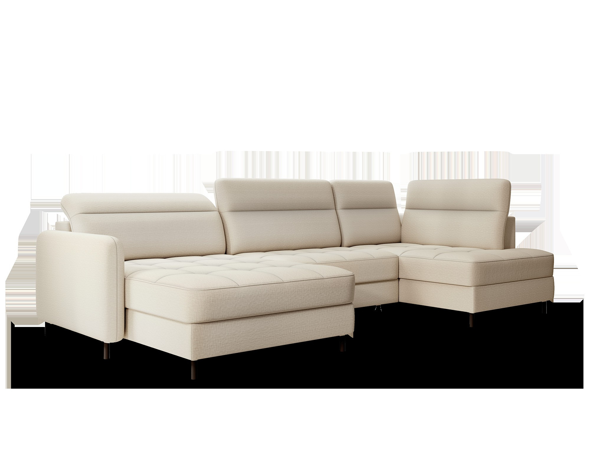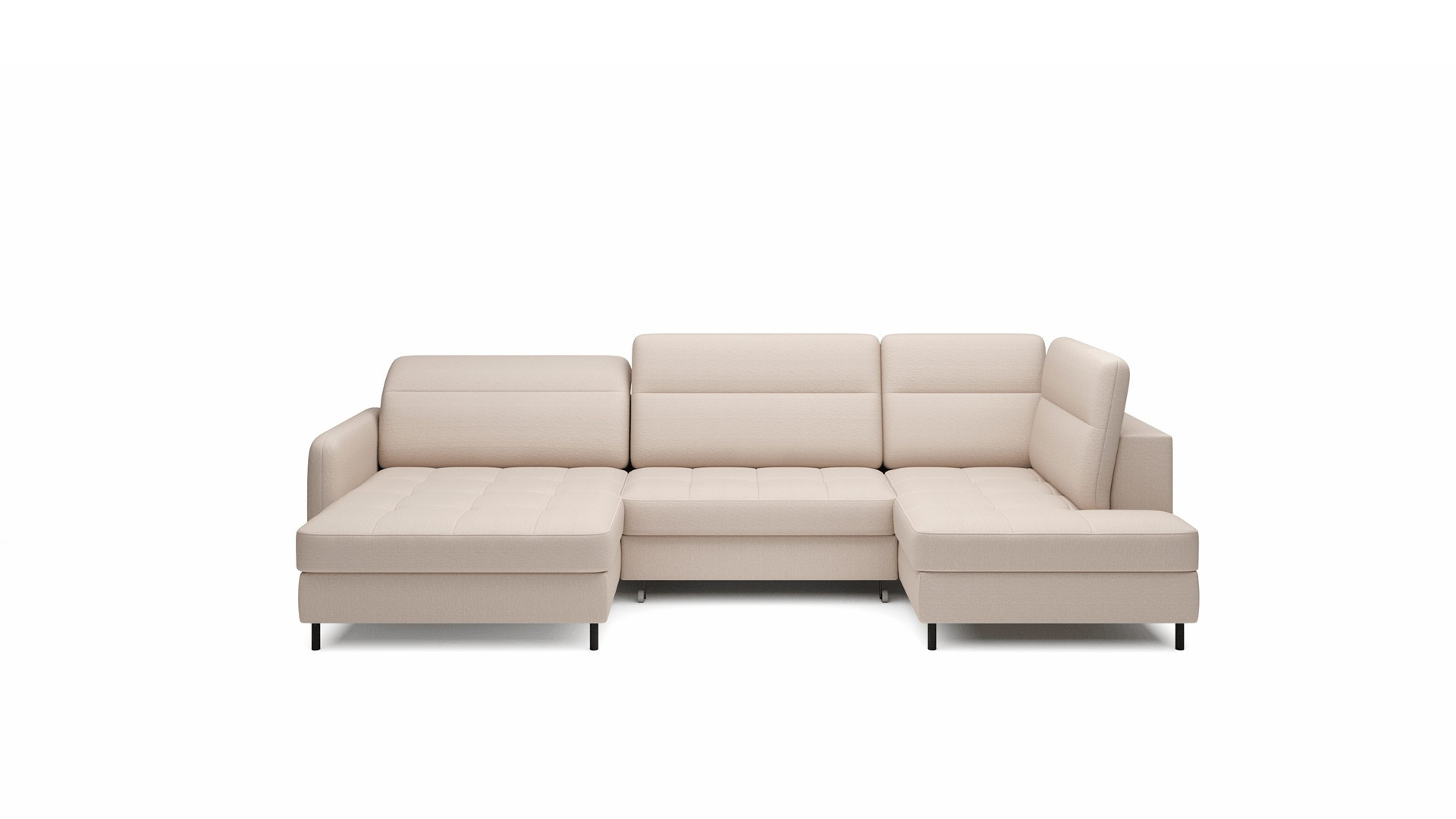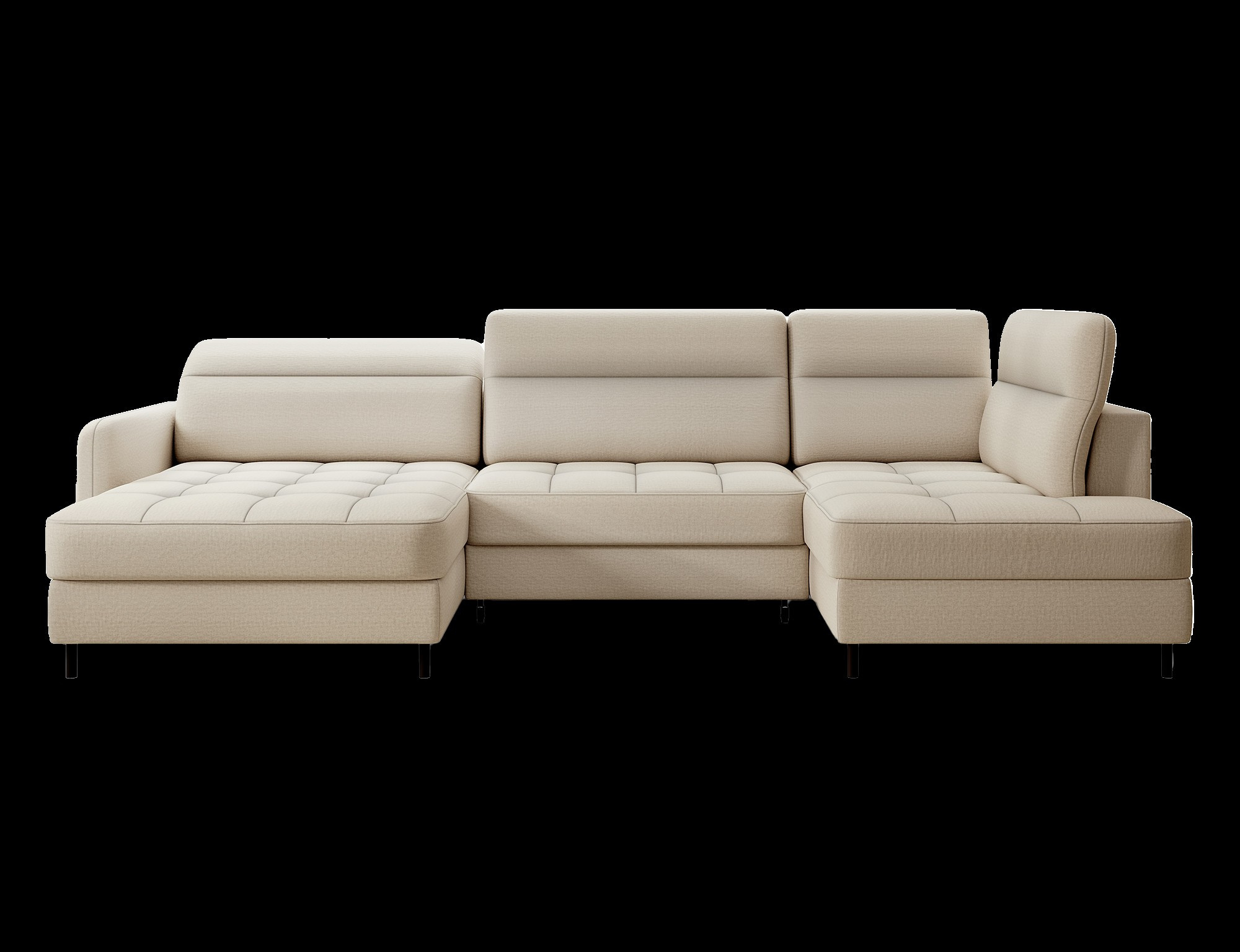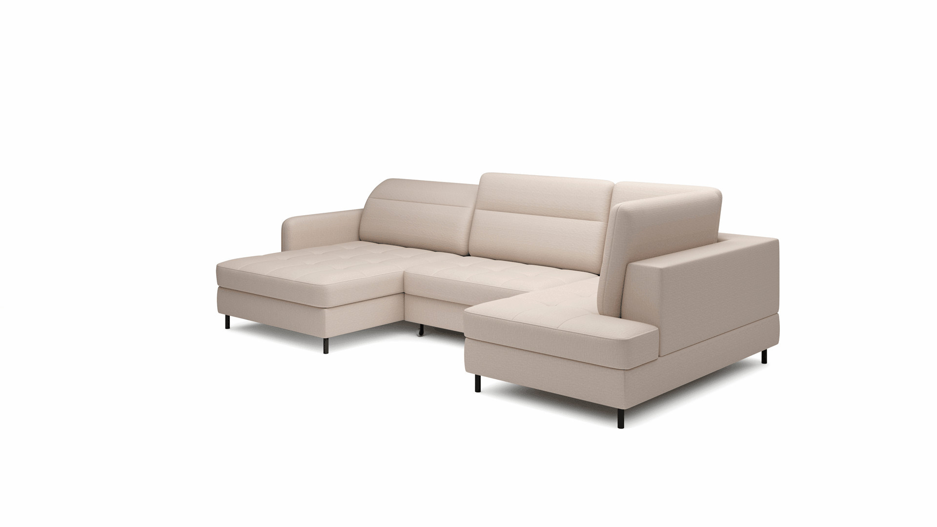 The Berrto corner sofa is an incredibly refined piece of furniture for your living room, designed to provide you with exceptional comfort and functionality. This elegant corner sofa combines modern design with the use of high-quality components. The Berrto corner sofa is equipped with wave springs of type B, which, in combination with high-elastic HR + T2130 foam, create a surface of unparalleled comfort. This piece of furniture is soft, flexible, and perfectly conforms to your body's shape, providing not only relaxation but also muscle relief. The use of upholstery straps and T2130 foam in the back of the Berrto corner sofa ensures its durability and resistance to deformations. You don't have to worry about unsightly wrinkles - this corner sofa will maintain its original appearance for many years. You can quickly and easily transform it into a comfortable bed, providing you and your guests with a restful night's sleep. Additionally, the corner sofa conceals a spacious storage compartment for bedding, providing ample space for all necessary textiles. The Berrto corner sofa offers not only comfort but also stability. With an impressive weight capacity of 390 kg, you can enjoy it for many years without worrying about its durability. The Berrto corner sofa stands out not only for its functionality but also for its aesthetic design. The black steel legs give it a modern character, and the elegant design makes it a standout element of your living room decor. The Berrto corner sofa is equipped with an easy-to-use Dolphin-type mechanism, allowing you to quickly transform it into a comfortable bed. This is the ideal solution when you need a sleeping space for guests. The Berrto corner sofa combines luxury, comfort, and functionality. Its high-quality craftsmanship and meticulous finishing make it not only the focal point of your living room but also a place for relaxation and spending time with friends and family.