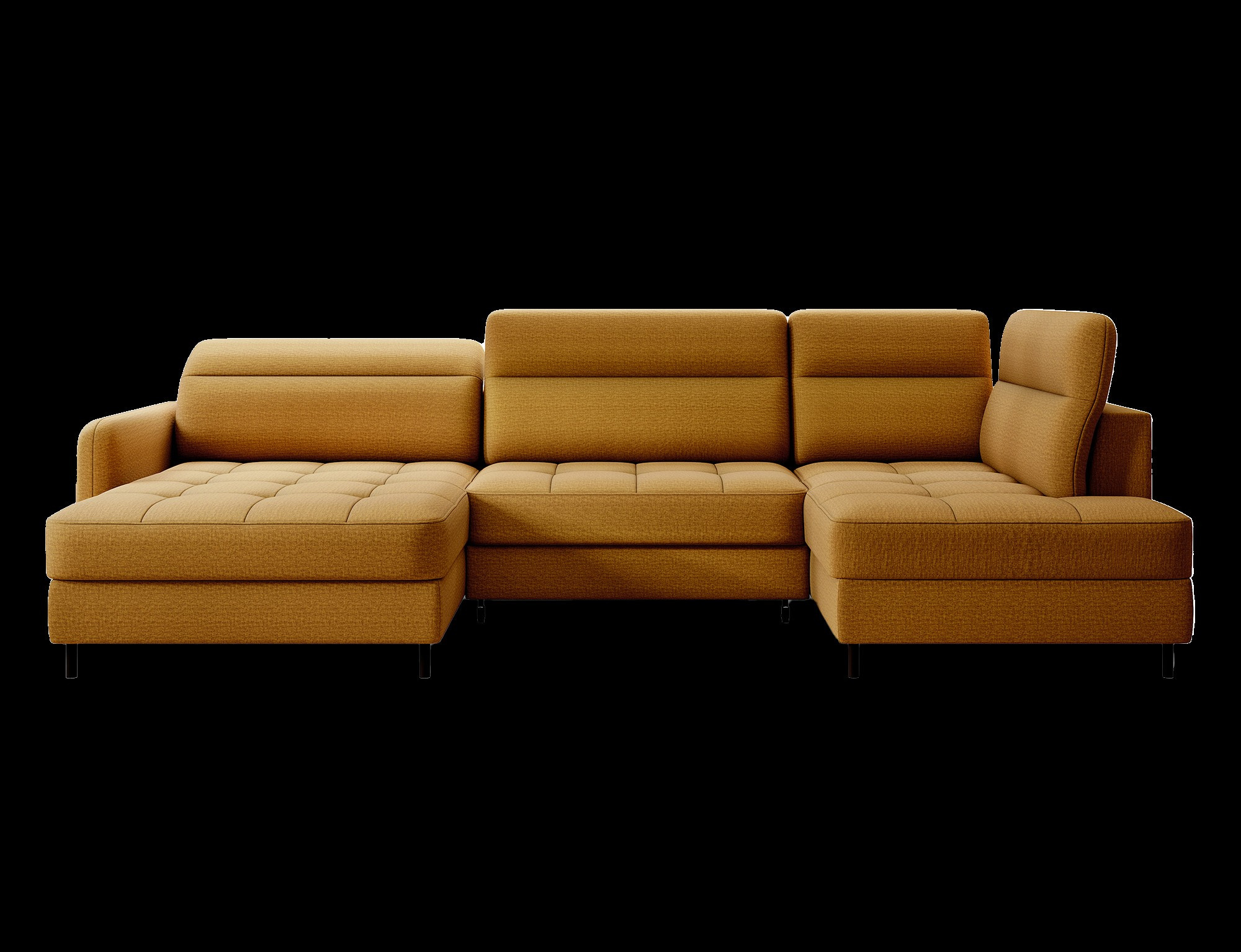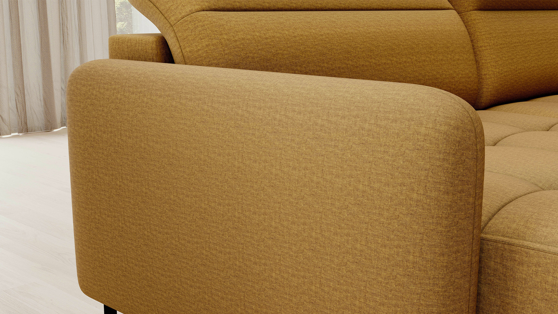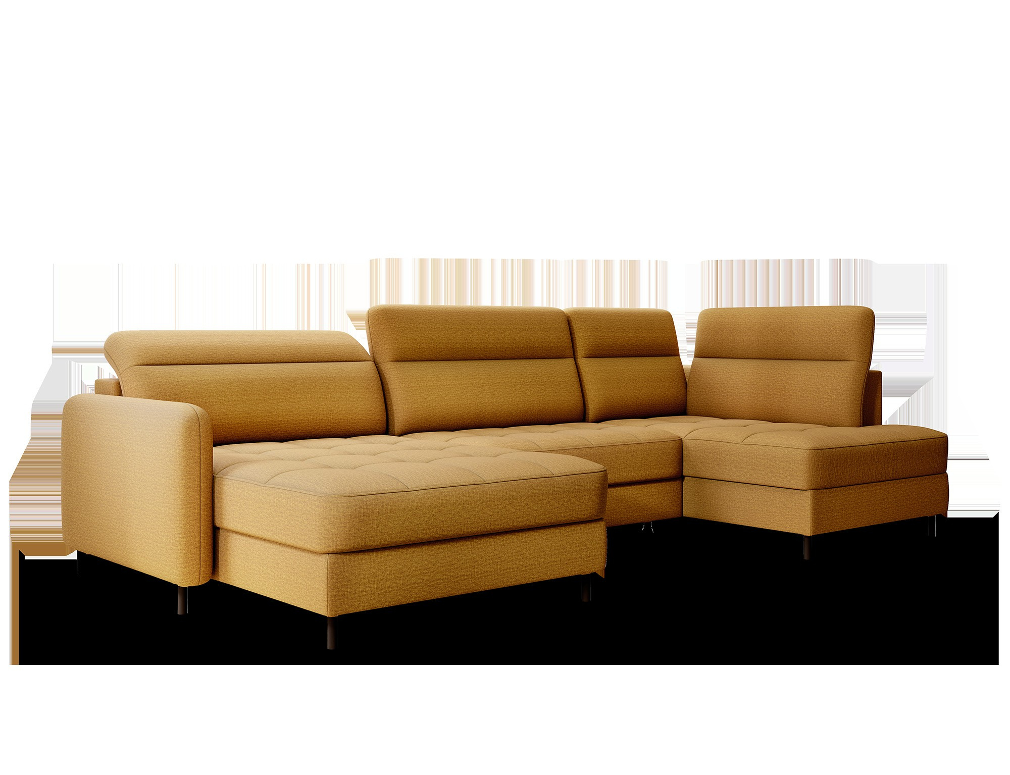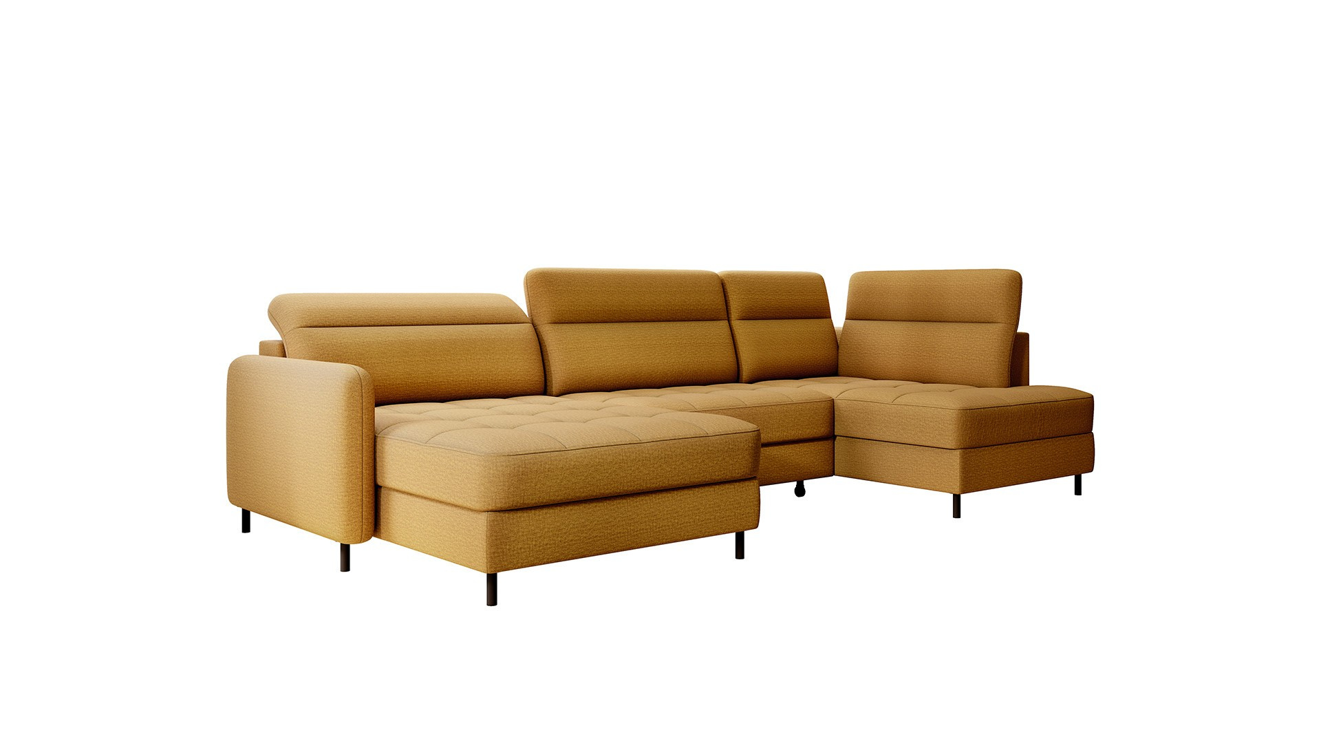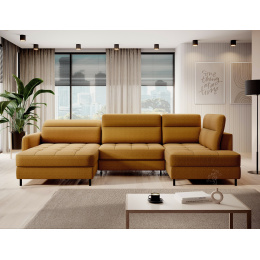 The Berrto corner sofa is an incredibly refined piece of furniture for your living room, designed to provide you with exceptional comfort and functionality. This elegant corner sofa combines modern design with the use of high-quality components. The Berrto corner sofa is equipped with wave springs of type B, which, in combination with high-elastic HR + T2130 foam, create a surface of unparalleled comfort. This piece of furniture is soft, flexible, and perfectly conforms to your body's shape, providing not only relaxation but also muscle relief. The use of upholstery straps and T2130 foam in the back of the Berrto corner sofa ensures its durability and resistance to deformations. You don't have to worry about unsightly wrinkles - this corner sofa will maintain its original appearance for many years. You can quickly and easily transform it into a comfortable bed, providing you and your guests with a restful night's sleep. Additionally, the corner sofa conceals a spacious storage compartment for bedding, providing ample space for all necessary textiles. The Berrto corner sofa offers not only comfort but also stability. With an impressive weight capacity of 390 kg, you can enjoy it for many years without worrying about its durability. The Berrto corner sofa stands out not only for its functionality but also for its aesthetic design. The black steel legs give it a modern character, and the elegant design makes it a standout element of your living room decor. The Berrto corner sofa is equipped with an easy-to-use Dolphin-type mechanism, allowing you to quickly transform it into a comfortable bed. This is the ideal solution when you need a sleeping space for guests. The Berrto corner sofa combines luxury, comfort, and functionality. Its high-quality craftsmanship and meticulous finishing make it not only the focal point of your living room but also a place for relaxation and spending time with friends and family.
