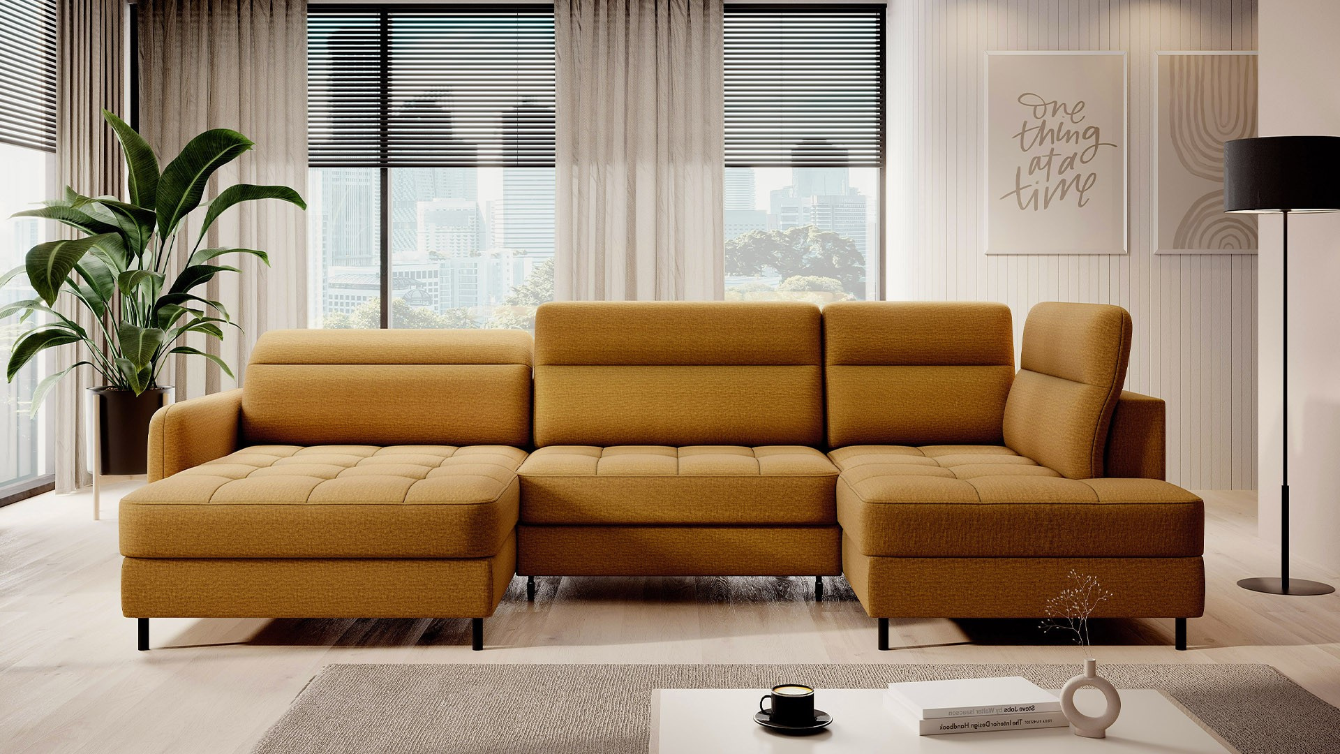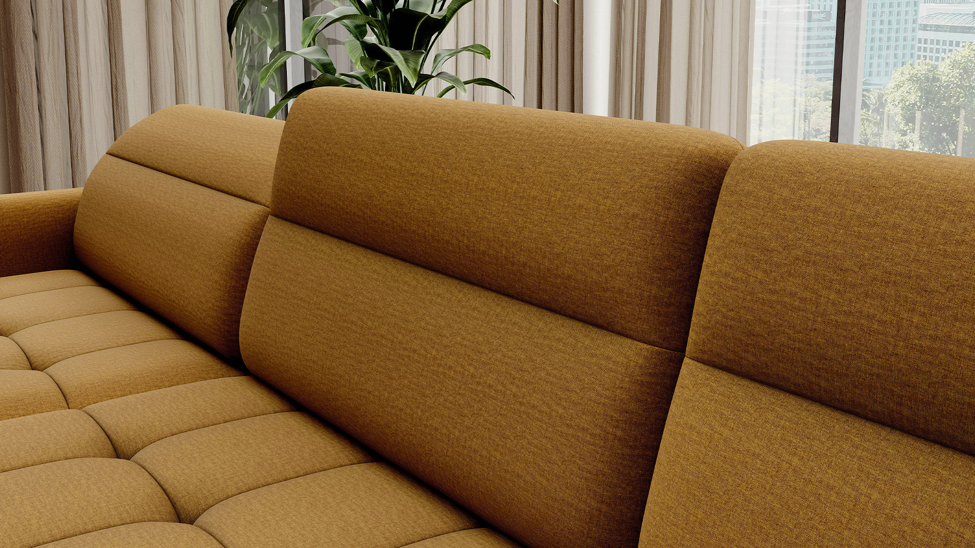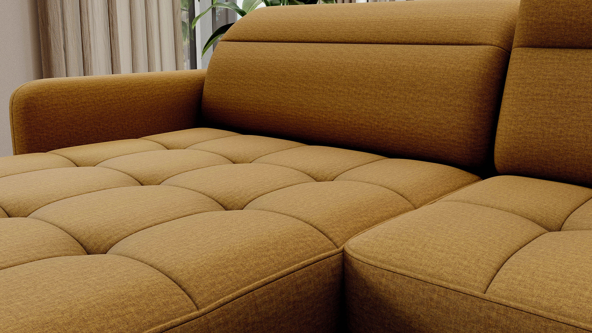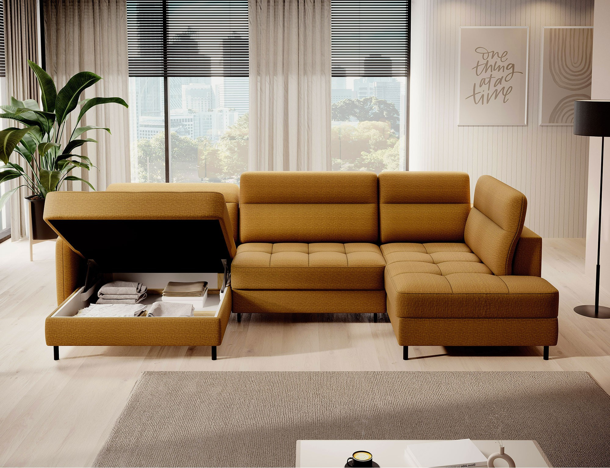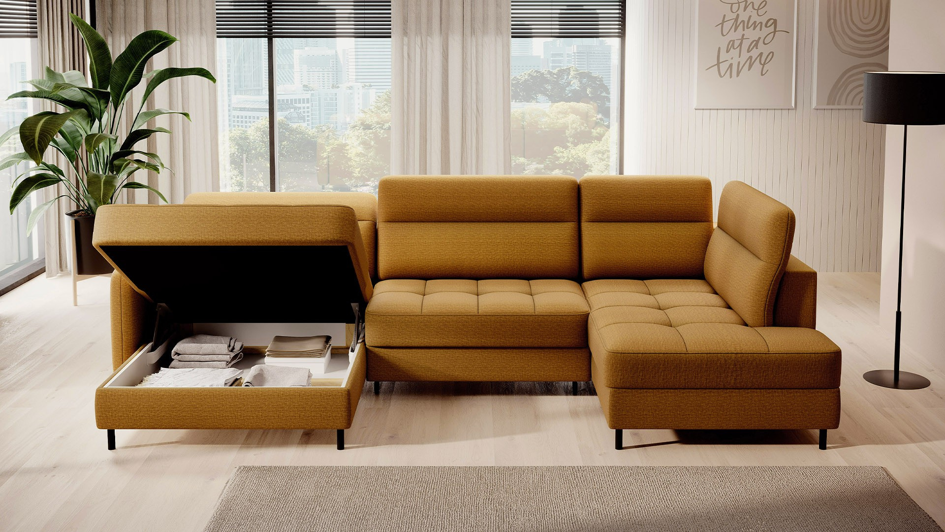 The Berrto corner sofa is an incredibly refined piece of furniture for your living room, designed to provide you with exceptional comfort and functionality. This elegant corner sofa combines modern design with the use of high-quality components. The Berrto corner sofa is equipped with wave springs of type B, which, in combination with high-elastic HR + T2130 foam, create a surface of unparalleled comfort. This piece of furniture is soft, flexible, and perfectly conforms to your body's shape, providing not only relaxation but also muscle relief. The use of upholstery straps and T2130 foam in the back of the Berrto corner sofa ensures its durability and resistance to deformations. You don't have to worry about unsightly wrinkles - this corner sofa will maintain its original appearance for many years. You can quickly and easily transform it into a comfortable bed, providing you and your guests with a restful night's sleep. Additionally, the corner sofa conceals a spacious storage compartment for bedding, providing ample space for all necessary textiles. The Berrto corner sofa offers not only comfort but also stability. With an impressive weight capacity of 390 kg, you can enjoy it for many years without worrying about its durability. The Berrto corner sofa stands out not only for its functionality but also for its aesthetic design. The black steel legs give it a modern character, and the elegant design makes it a standout element of your living room decor. The Berrto corner sofa is equipped with an easy-to-use Dolphin-type mechanism, allowing you to quickly transform it into a comfortable bed. This is the ideal solution when you need a sleeping space for guests. The Berrto corner sofa combines luxury, comfort, and functionality. Its high-quality craftsmanship and meticulous finishing make it not only the focal point of your living room but also a place for relaxation and spending time with friends and family.