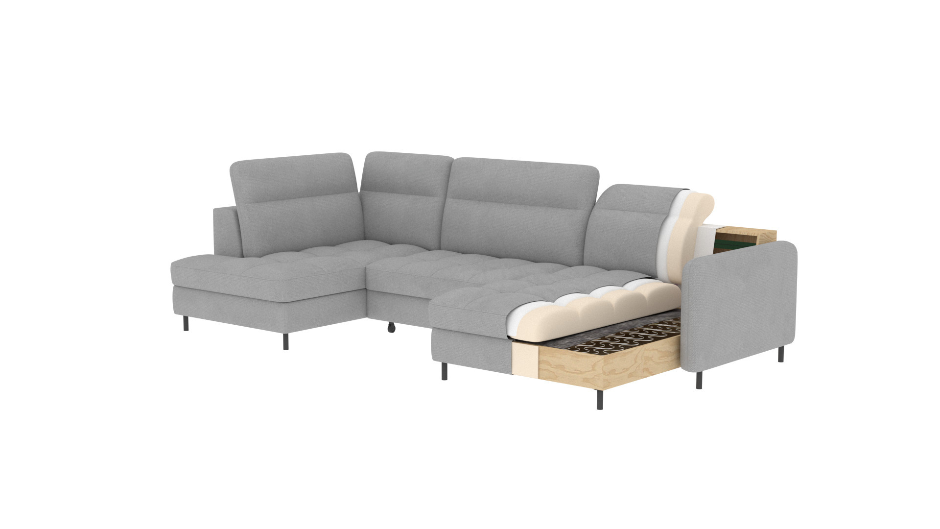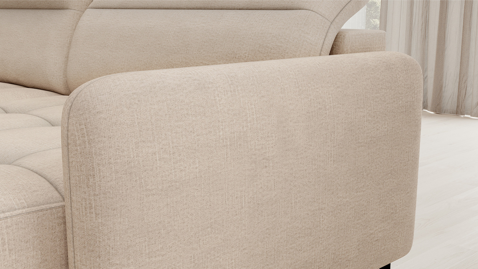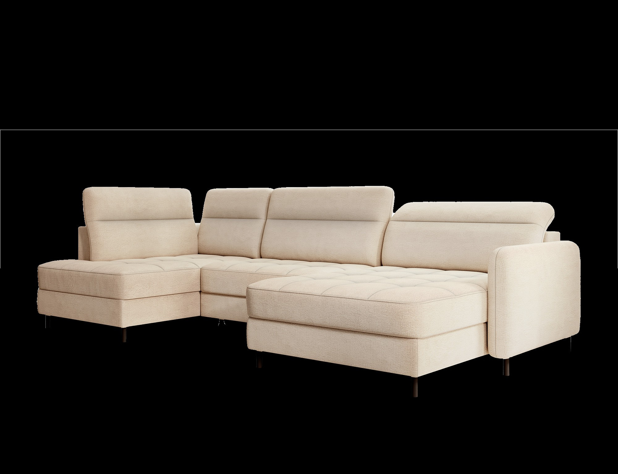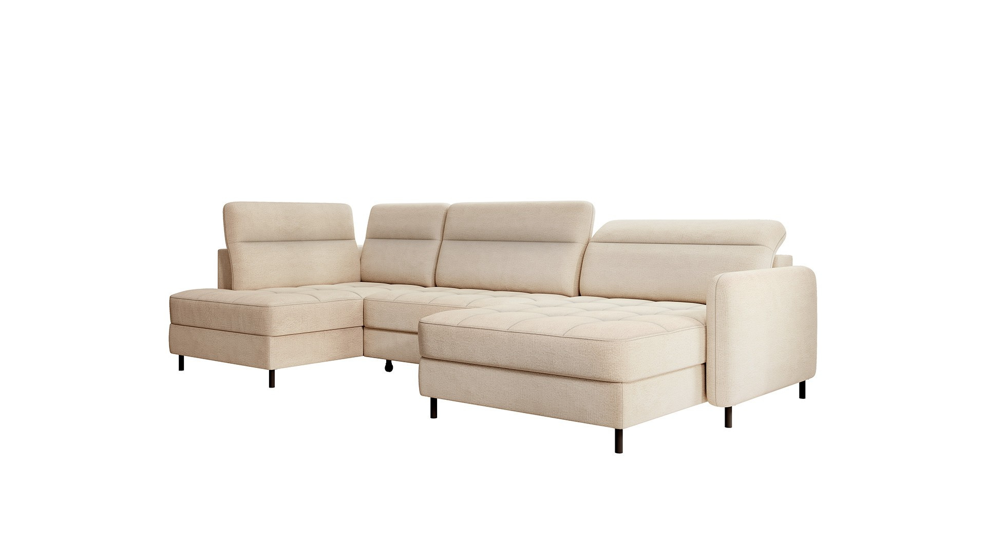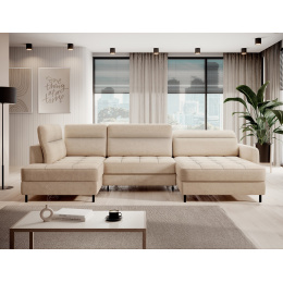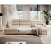 The Berrto corner sofa is an incredibly refined piece of furniture for your living room, designed to provide you with exceptional comfort and functionality. This elegant corner sofa combines modern design with the use of high-quality components. The Berrto corner sofa is equipped with wave springs of type B, which, in combination with high-elastic HR + T2130 foam, create a surface of unparalleled comfort. This piece of furniture is soft, flexible, and perfectly conforms to your body's shape, providing not only relaxation but also muscle relief. The use of upholstery straps and T2130 foam in the back of the Berrto corner sofa ensures its durability and resistance to deformations. You don't have to worry about unsightly wrinkles - this corner sofa will maintain its original appearance for many years. You can quickly and easily transform it into a comfortable bed, providing you and your guests with a restful night's sleep. Additionally, the corner sofa conceals a spacious storage compartment for bedding, providing ample space for all necessary textiles. The Berrto corner sofa offers not only comfort but also stability. With an impressive weight capacity of 390 kg, you can enjoy it for many years without worrying about its durability. The Berrto corner sofa stands out not only for its functionality but also for its aesthetic design. The black steel legs give it a modern character, and the elegant design makes it a standout element of your living room decor. The Berrto corner sofa is equipped with an easy-to-use Dolphin-type mechanism, allowing you to quickly transform it into a comfortable bed. This is the ideal solution when you need a sleeping space for guests. The Berrto corner sofa combines luxury, comfort, and functionality. Its high-quality craftsmanship and meticulous finishing make it not only the focal point of your living room but also a place for relaxation and spending time with friends and family.