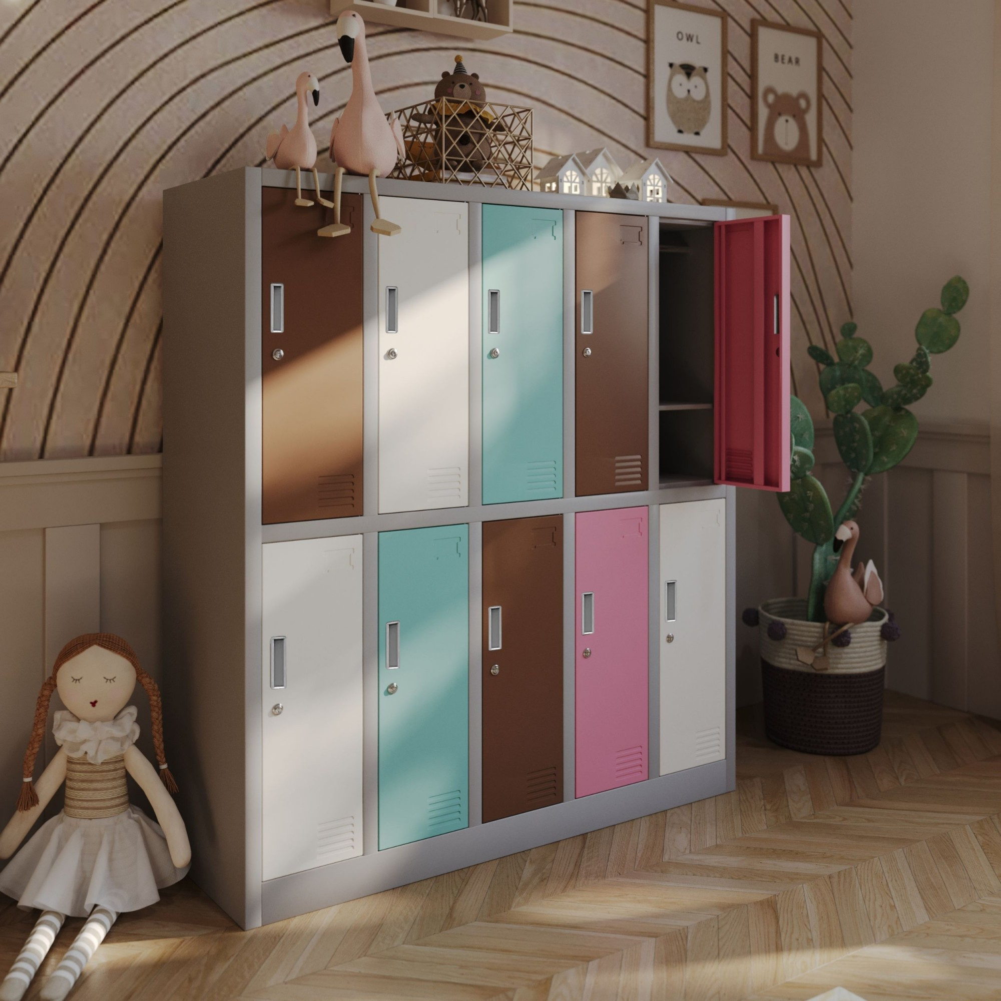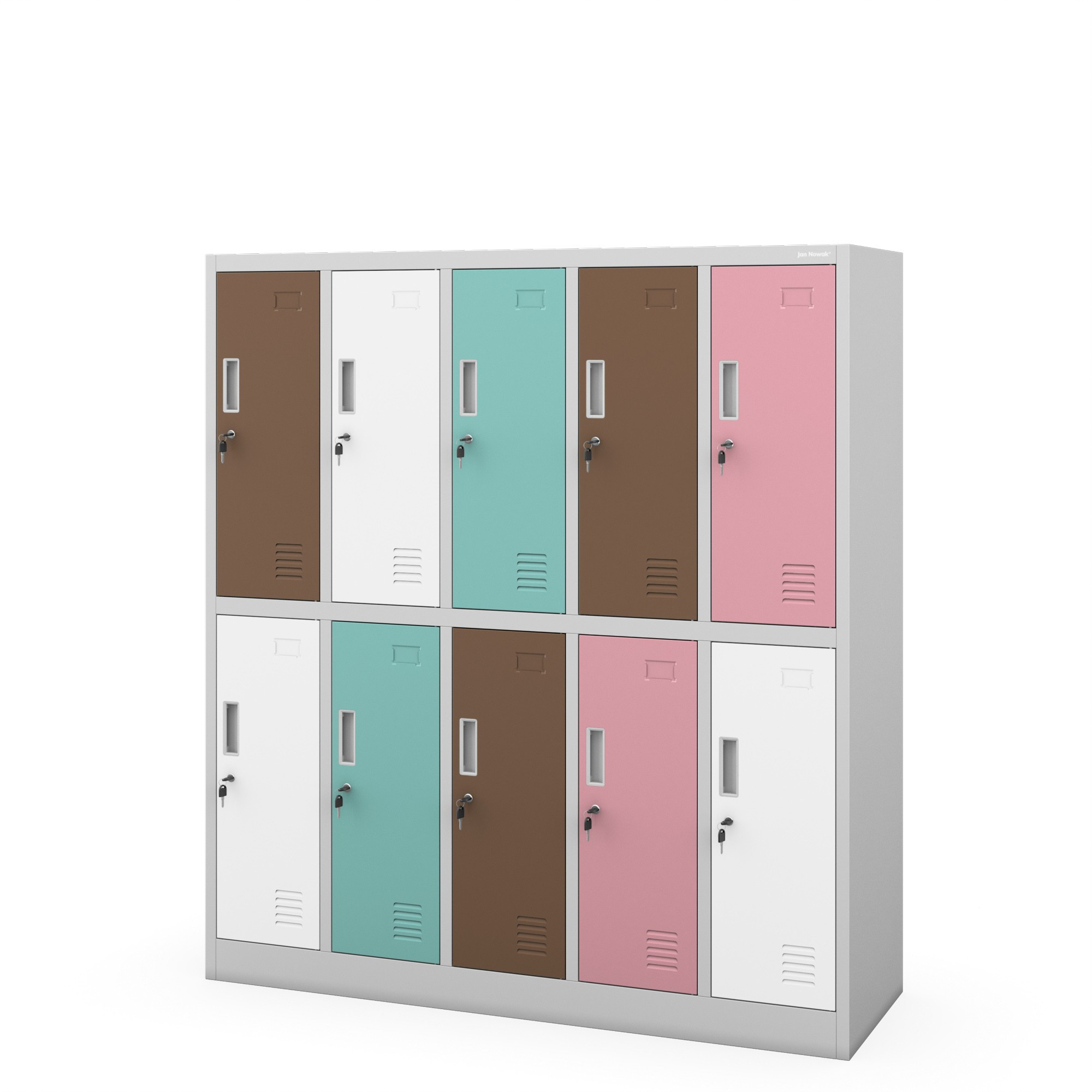BHP iskolai szekrény szürke-pasztell: 10 rekeszes, 1360 x 1500 x 450 mm