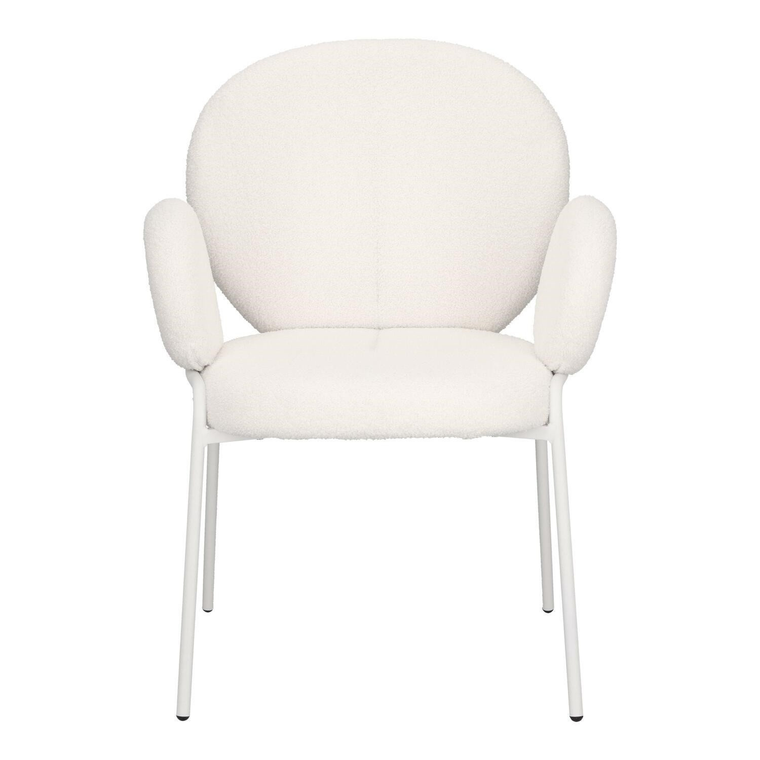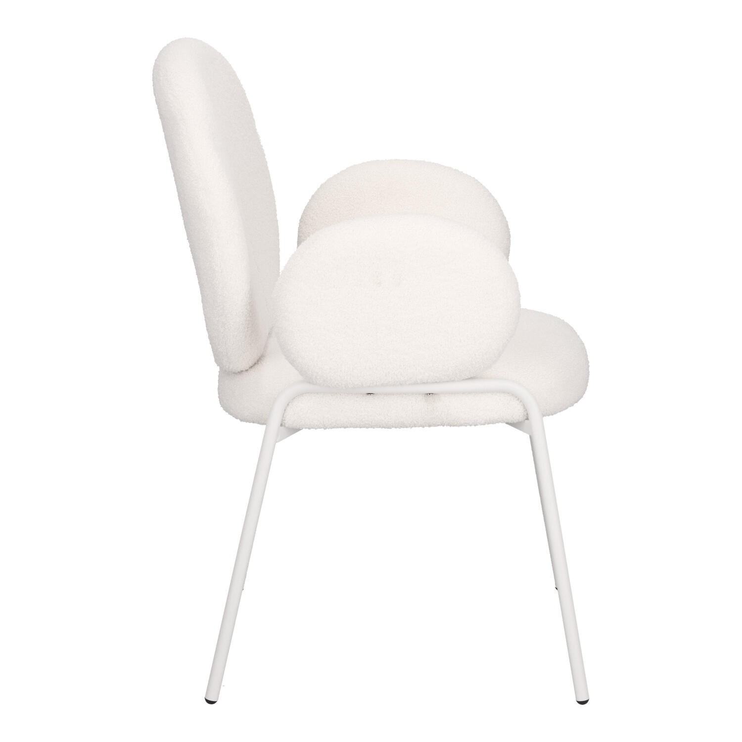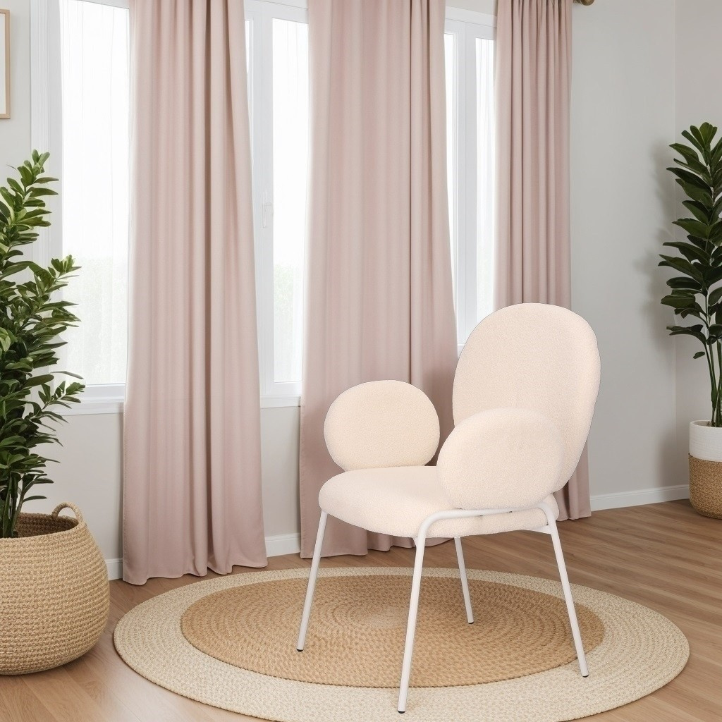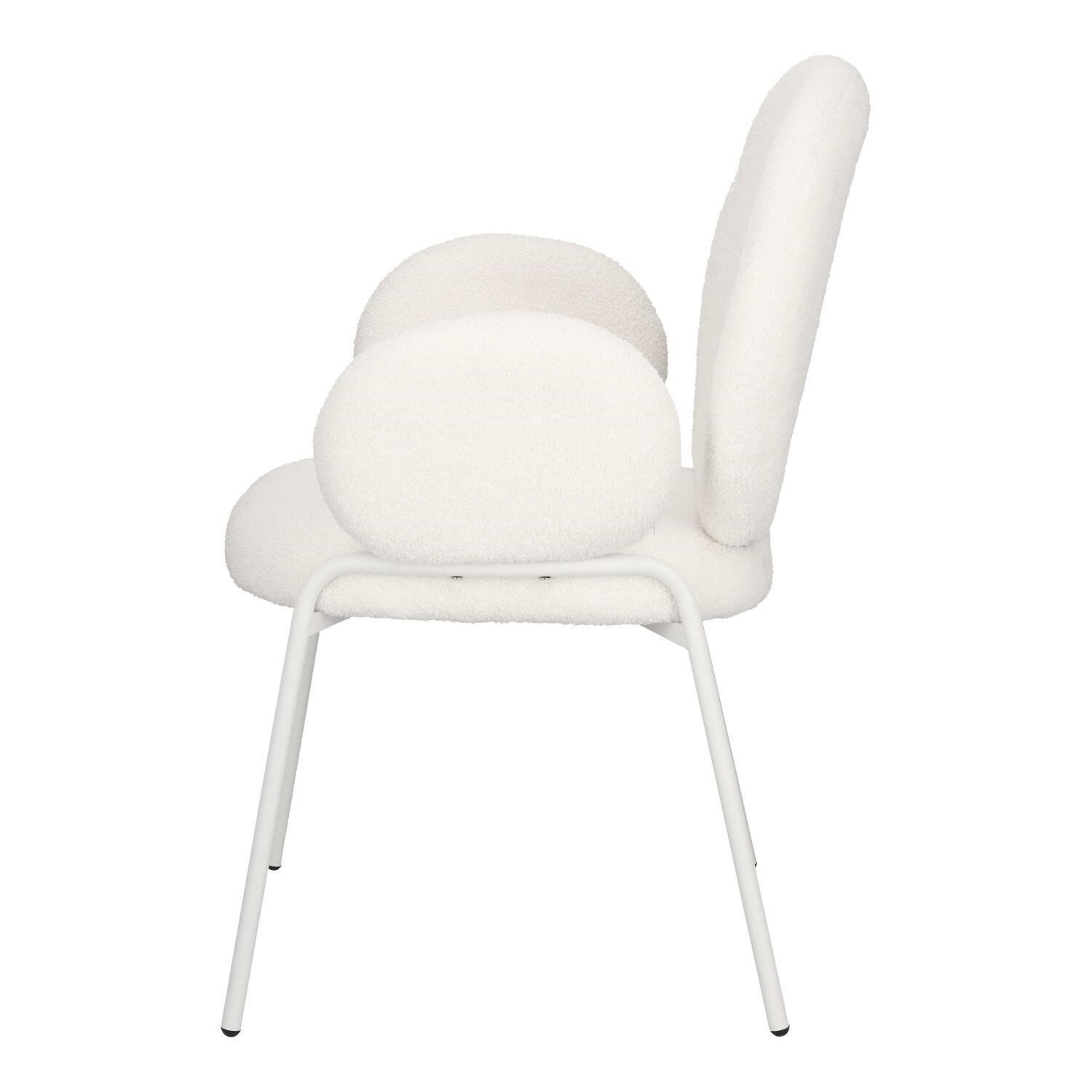A Bianco stílusos szék boho stílusban, négy fehérre porfestett fém lábbal, a divatos és világos nappali kvintesszenciája lesz. Bouclé szövettel kárpitozva, amely puha és stílusos, kivételes kényelmet és eleganciát nyújt. Ideális természetes stílusú belső terekhez világos vagy bézs kivitelben. A Bianco szék ötvözi a funkcionalitást az esztétikával. Tökéletesen illik a nappaliba, étkezőbe vagy hálószobába, ahol meleg, otthonos légkört teremt. A Bianco nagyon kényelmes szék ideális hosszú ülésekhez és pihenéshez az asztalnál családdal vagy barátokkal. Összeszerelést igényel. Max. terhelhetőség 120 kg Nem rakásolható Nem alkalmas kültéri használatra