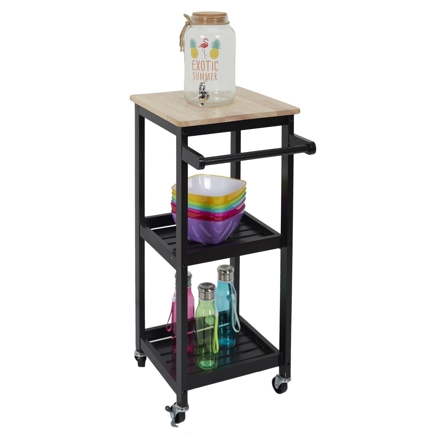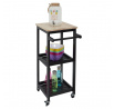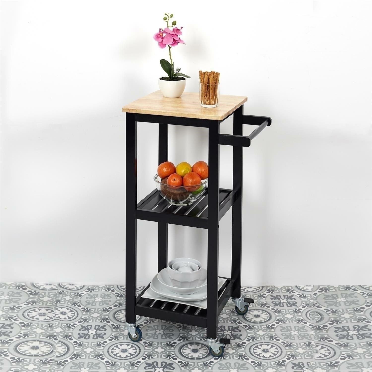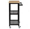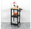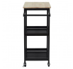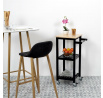 A fekete konyhai kocsi egy multifunkcionális bútor, amelyet nemcsak zöldségek vagy fűszerek tárolására használhatunk. A kocsi kiegészítő segédterületként is szolgálhat a konyhában vagy az étkezőben. A Bish kocsi bárként is szolgálhat, mivel van egy fogantyúja, amellyel mozgathatjuk. A kocsinak két fekete perforált polca és fa hatású furnérlemeze van. A kocsi nagyon tartós MDF lapból készült.A tábla méretei: 37x37 cm Bútor súlya: 5,5 kg Csomag méretei: 12,00 × 39,00 × 79,00 cm