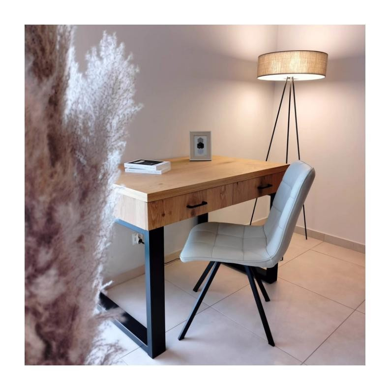 Biurko Matin to doskonałe uzupełnienie pomieszczeń w stylu loftowym. Wyjątkowe połączenie naturalnej okleiny z metalem gwarantuje wytrzymałość i niepowtarzalny design na długie lata. Dodatkowej funkcjonalności dodają mu dwie pojemne szuflady. \n \n \n \nSpecyfikacja: \n \n-Naturalna okleina dębowa - olejowana, \n-Szuflady z cichym domykiem, \n-Uchwyty oraz nogi metalowe.