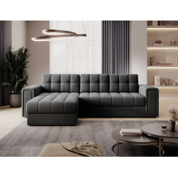 The Blenvi corner sofa is a modern and versatile piece of furniture, perfect for a living room. It features a seat with wave springs type B and high-quality T2540 polyurethane foam, ensuring excellent comfort. Equipped with a Dolphin-type sleeping function, it easily transforms into a comfortable bed. Additionally, it includes a storage compartment for bedding, providing extra functionality. The fully upholstered back allows for placement anywhere in the room. Its stylish, modern design makes it a perfect fit for various interior styles.