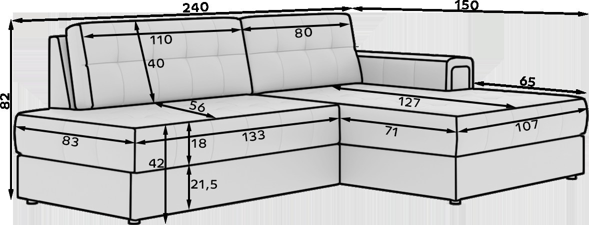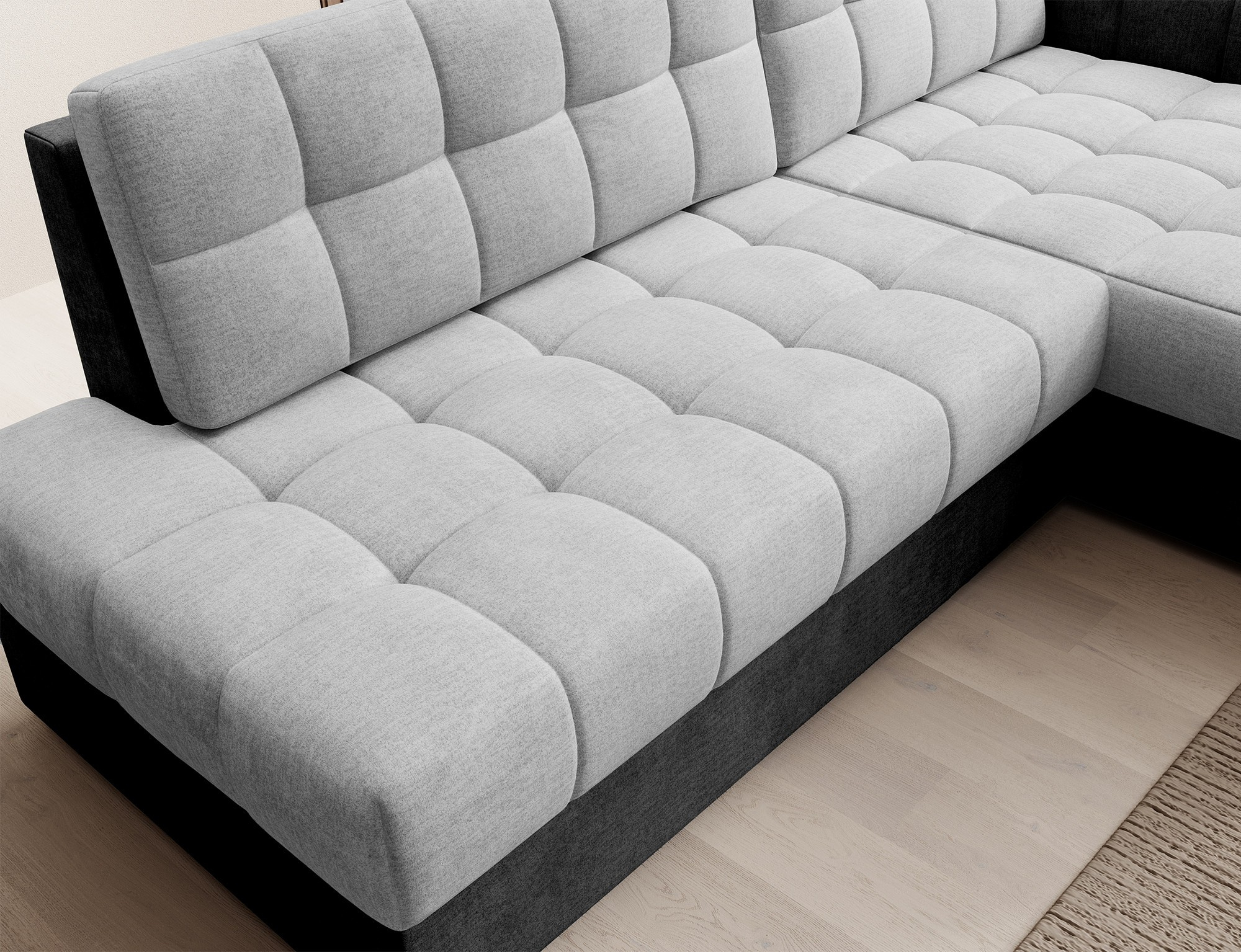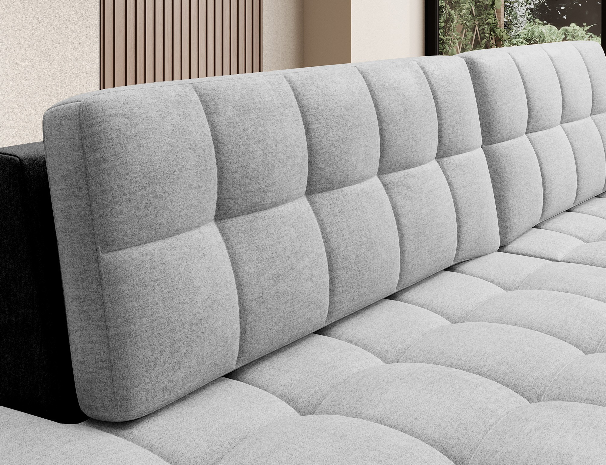 The Blezalt corner sofa is a perfect combination of modern design, functionality, and comfort. Its dimensions of 240x150x82 cm provide ample space for everyday relaxation, while the sleeping function and bedding storage compartment make it an ideal choice for any interior. The seat, made of T2540 polyurethane foam and type B wave springs, ensures comfort and resistance to deformation, while the foam-filled backrest adapts to the body, offering optimal support. Thanks to the Delfin unfolding mechanism, the sofa transforms into a comfortable bed in seconds, and the bedding compartment allows for convenient storage of extra textiles. The upholstered back gives it an elegant look from every angle, and the black plastic legs add both stability and lightness. Perfect for living rooms, lounges, and modern interiors, it offers lasting comfort and style.