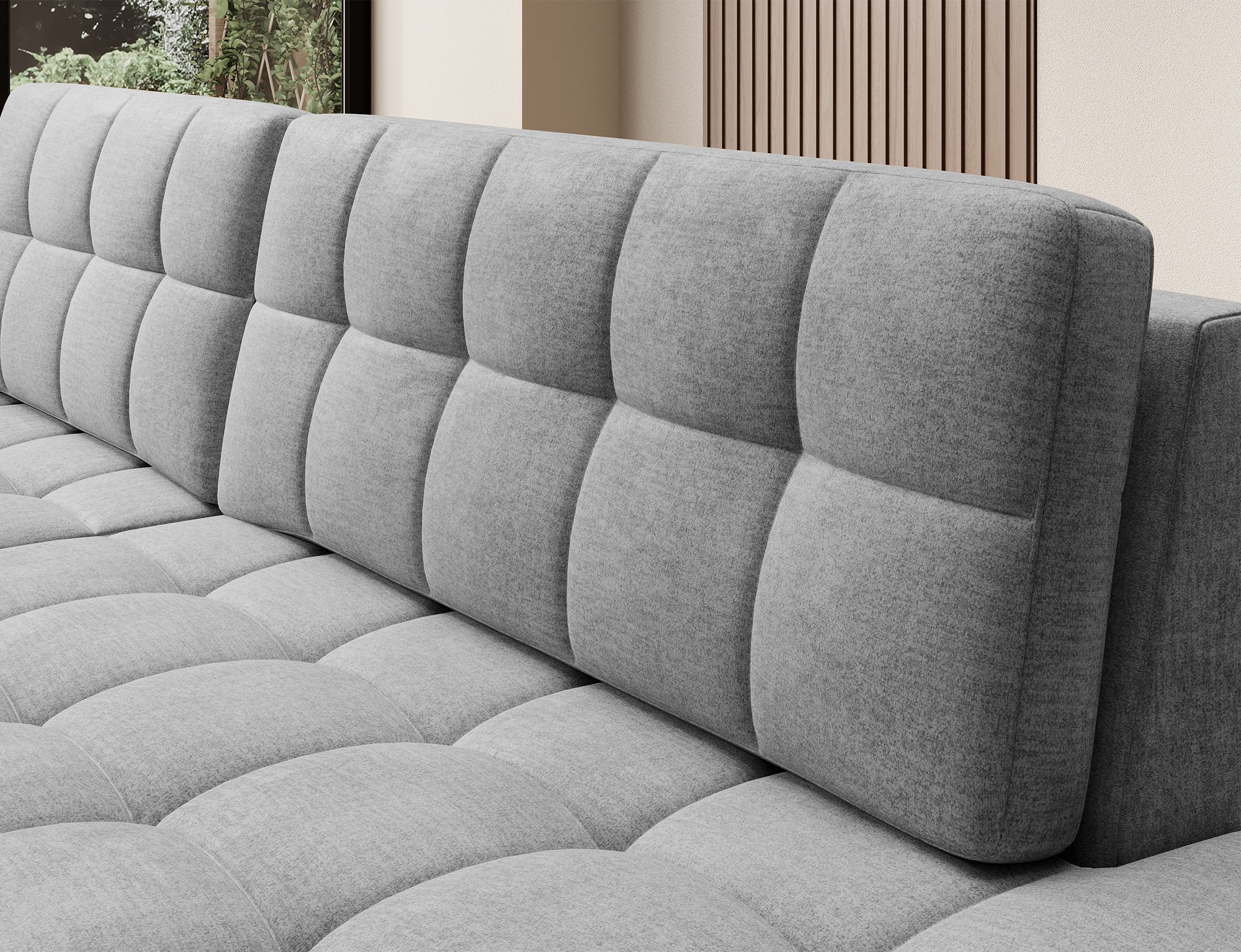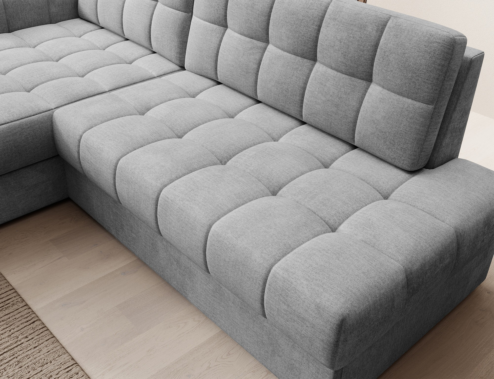 The Blezalt corner sofa is a perfect combination of modern design, functionality, and comfort. Its dimensions of 240x150x82 cm provide ample space for everyday relaxation, while the sleeping function and bedding storage compartment make it an ideal choice for any interior. The seat, made of T2540 polyurethane foam and type B wave springs, ensures comfort and resistance to deformation, while the foam-filled backrest adapts to the body, offering optimal support. Thanks to the Delfin unfolding mechanism, the sofa transforms into a comfortable bed in seconds, and the bedding compartment allows for convenient storage of extra textiles. The upholstered back gives it an elegant look from every angle, and the black plastic legs add both stability and lightness. Perfect for living rooms, lounges, and modern interiors, it offers lasting comfort and style.