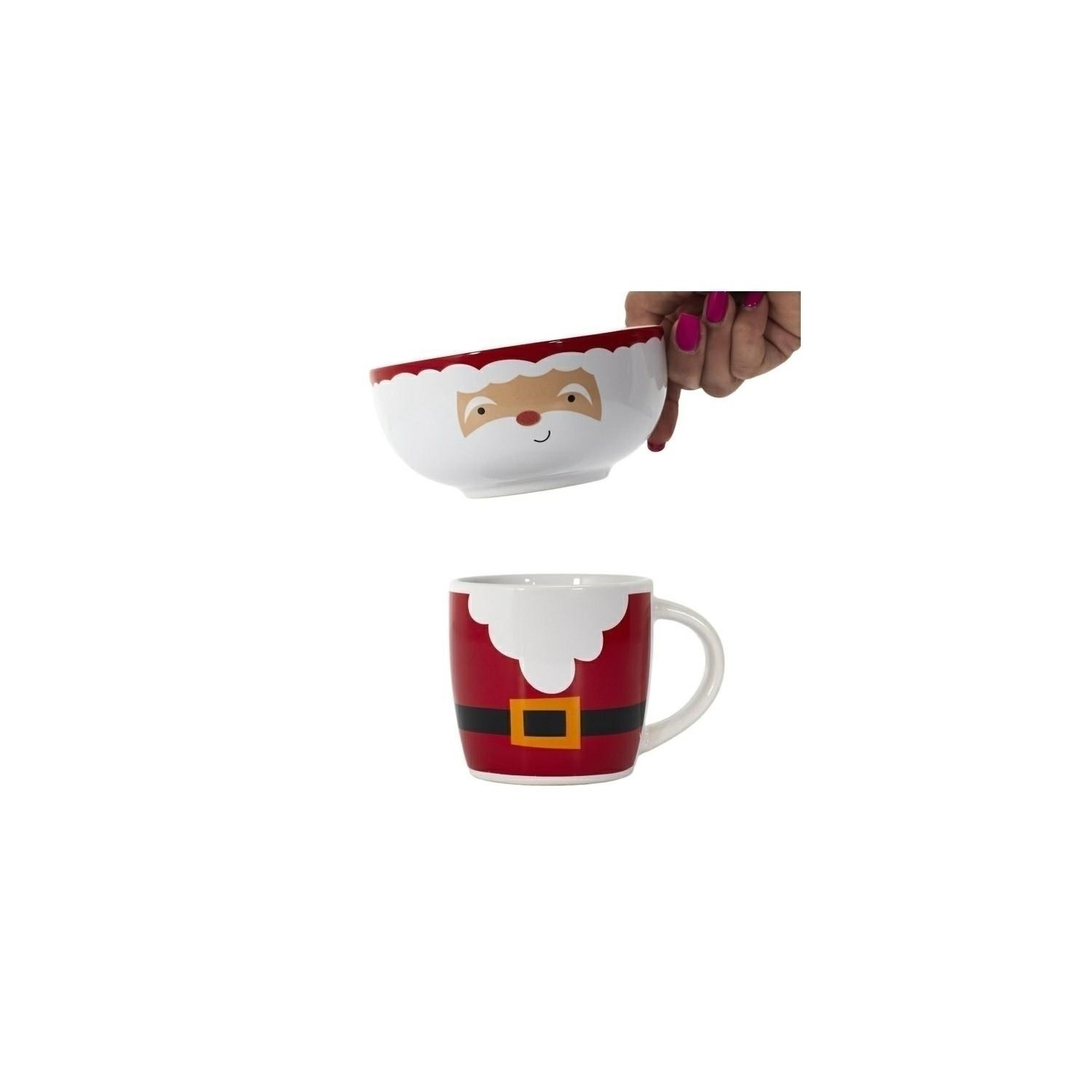 Szent Miklós motívummal ellátott tálka és bögre készlet ideális ajándék Mikulásra az iskolában, a munkahelyen vagy apróságként egy közeli személy számára. Egy kedves és mosolygós Mikulás nyomata díszíti a tálkát, míg a Mikulás ruhája a bögre. A 13,5 cm átmérőjű tál ideális lehet uzsonnához, reggeli gabonapelyhekhez vagy diófélékhez. Egy csészében készítünk kakaót vagy kávét, és az egész készlet elkísérhet minket egy ünnepi estén egy könyvvel vagy vacsorán a családdal.
