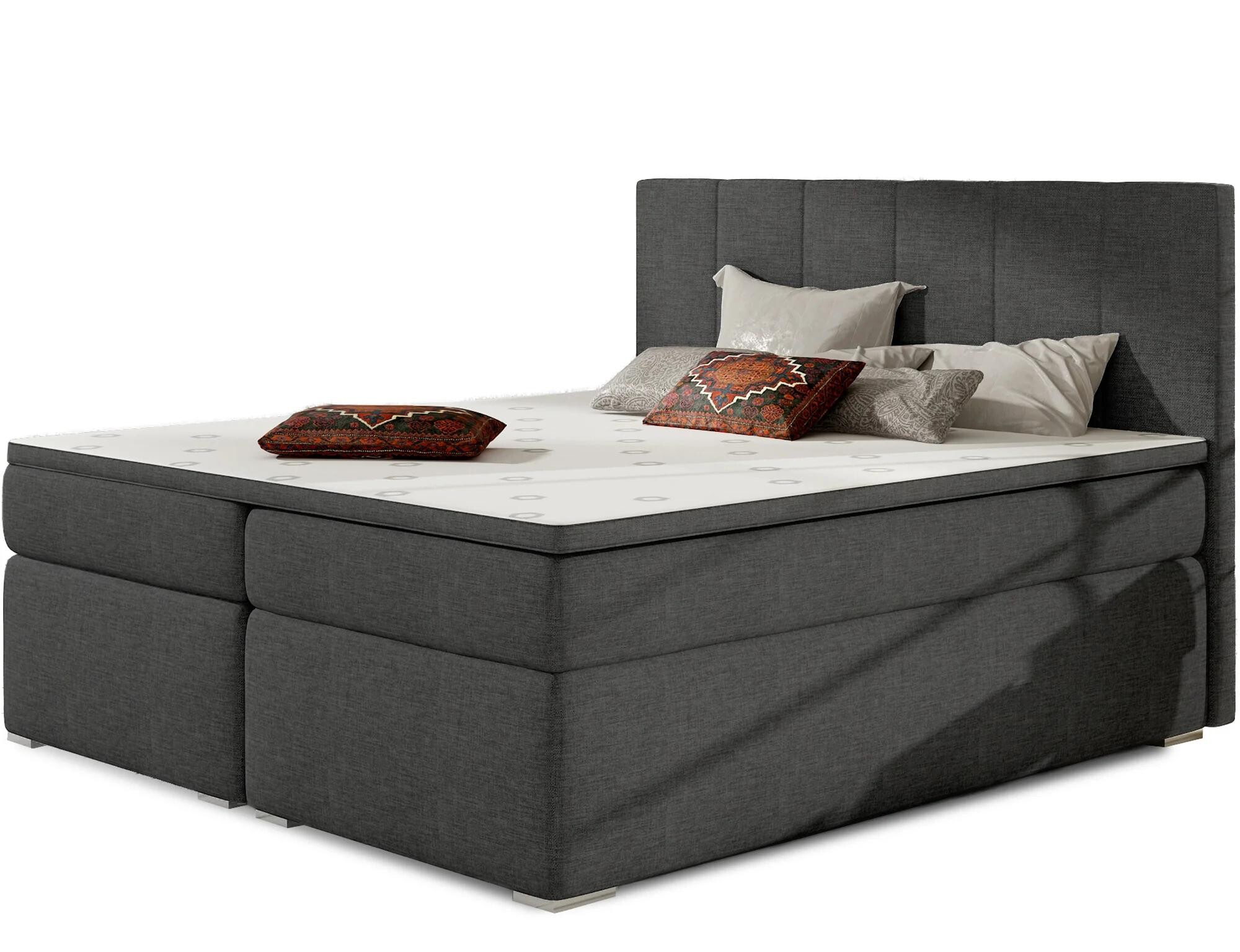 Bolero is a simple, yet elegant and very comfortable boxspring continental bed that will be the perfect finishing touch to any modern bedroom design. This model, available in a choice of three sizes: 140/160/180 x 200 cm, is equipped with a firm 20 cm high bonell mattress enriched with a 4 cm layer of additional T25 foam placed on the top and bottom of the mattress. The bed is also equipped with a topper - a 4 cm thick mattress topper made of T21 foam. In addition, thanks to a spring mechanism and handles, the upper part of the bed raises, giving the user of the furniture access to two spacious bedding bins, divided into three parts. Additional distinctive elements for the Bolero bed include elegant legs, a deep seat and a high headrest, decorated with stripes. If you are interested in a comfortable, as well as stylish bed, which retains the right flexibility and firmness, and at the same time is functional and carefully finished in terms of design - we invite you to be interested in our Boxspring. If the quality of your sleep matters to you - it will certainly be an ideal choice.