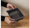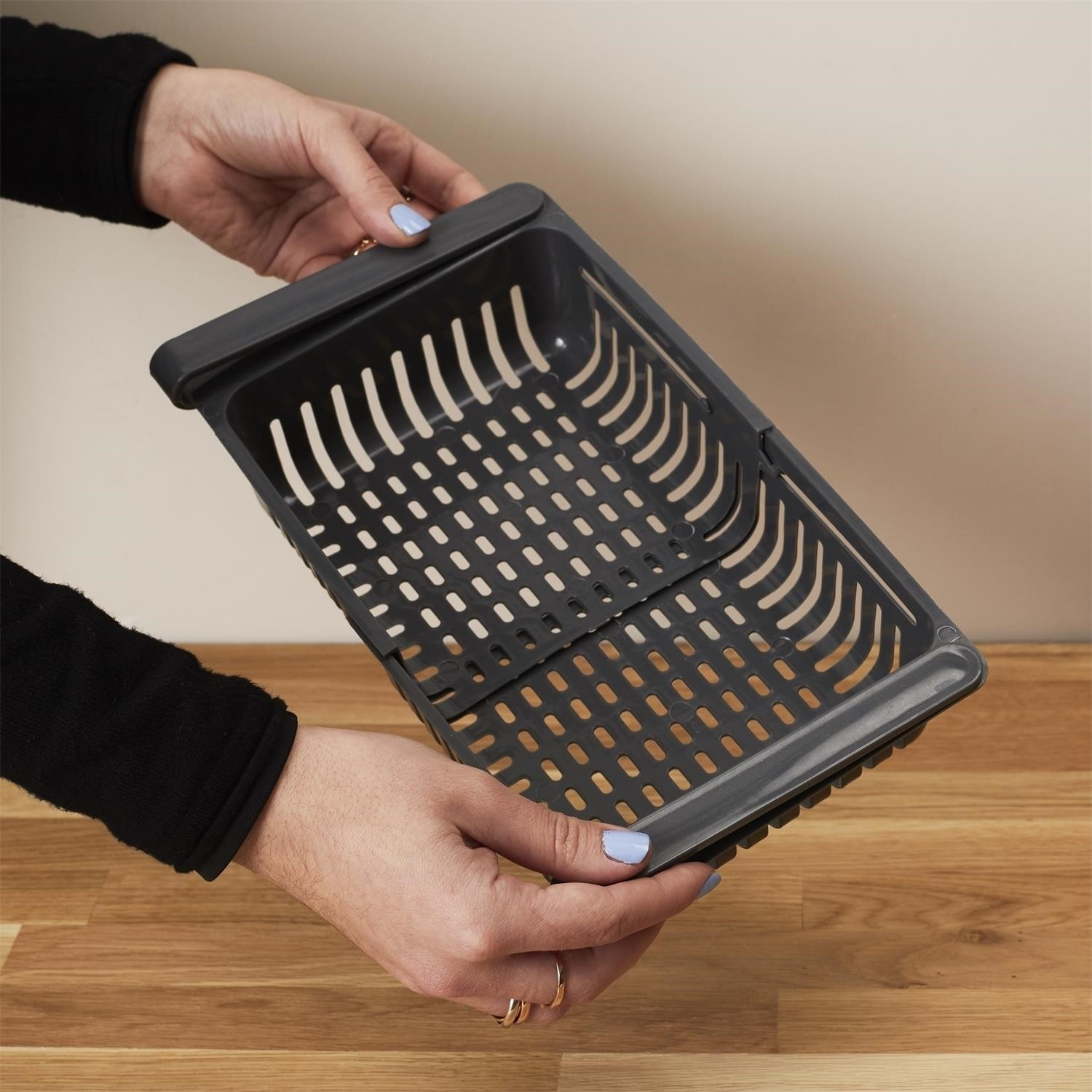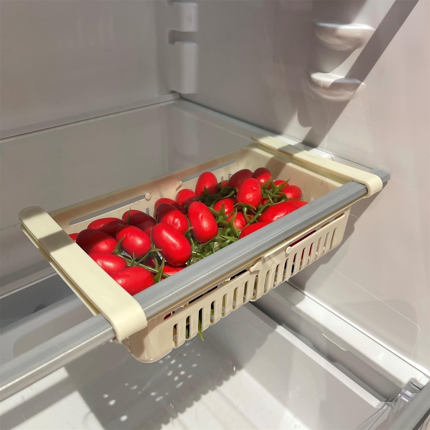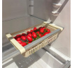 Hűtőszekrénybe való függő polc, amelynek szélessége igényeink szerint állítható. A polc állítható szélessége 14 és 24 cm között van. Zöldséget és gyümölcsöt is tárolhatunk benne, mivel a polc rácsos, ami elősegíti a levegő keringését benne. Polipropilénből készült polc
