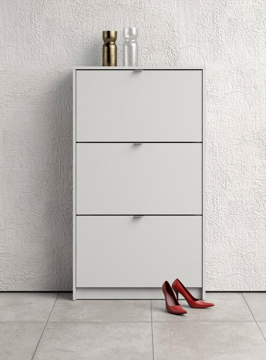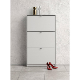 Zachraňte svou předsíň před nepořádkem a pořiďte si botník Flap s výklopnými dvířky. Botník nabízíme v několika variantách, které můžete různě kombinovat a jen na Vás a Vašem prostoru záleží kolik si těchto botníků koupíte a jak si je uspořádáte. V tomto případě se fantazii meze nekladou. Pro inspiraci jsou přiloženy fotografie s vyobrazením, jaké jsou možnosti sestavení. Díky svému provedení pojme botník Flap opravdu velké množství bot. Do každé výklopné přihrádky můžete ukládat boty ve dvou řadách.Vaše předsíň pak bude stále uklizená a zakopávání o boty se stane minulostí. Botník je vyrobený z lamina, které je odolné a snadné na údržbu a nabízíme ho v několika barevných provedeních. Je dodávaný v demontu a součástí balení je montážní návod včetně všech spojovacích prvků. Cena je uvedena za 1 kus botníku Flap se třemi výklopnými přihrádkami. Vyobrazené doplňky a dekorace nejsou v ceně.