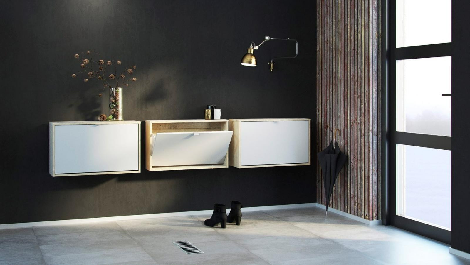 Zachraňte svou předsíň před nepořádkem a pořiďte si botník Flap s výklopnými dvířky. Botník nabízíme v několika variantách, které můžete různě kombinovat a jen na Vás a Vašem prostoru záleží kolik si těchto botníků koupíte a jak si je uspořádáte. V tomto případě se fantazii meze nekladou. Pro inspiraci jsou přiloženy fotografie s vyobrazením, jaké jsou možnosti sestavení. Díky svému provedení pojme botník Flap opravdu velké množství bot. Do každé výklopné přihrádky můžete ukládat boty ve dvou řadách. Vaše předsíň pak bude stále uklizená a zakopávání o boty se stane minulostí. Botník je vyrobený z lamina, které je odolné a snadné na údržbu a nabízíme ho v několika barevných provedeních. Je dodávaný v demontu a součástí balení je montážní návod včetně všech spojovacích prvků. Cena je uvedena za 1 kus botníku Flap se třemi výklopnými přihrádkami. Vyobrazené doplňky a dekorace nejsou v ceně.