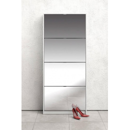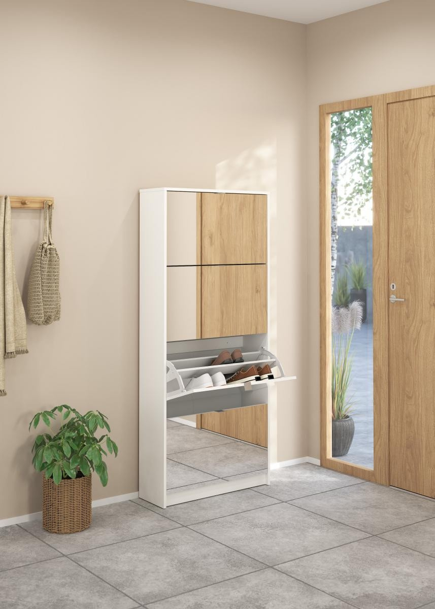 Po prostorném botníku touží každý milovník bot i početná rodina. Boty se hromadí v předsíni, vzniká chaos a zakopávání o boty je na denním pořádku. Zachraňte svou předsíň před nepořádkem a pořiďte si botník Flap s výklopnými dvířky. Vaše předsíň bude uklizená a zakopávání o boty se stane minulostí. Díky svému provedení pojme botník Flap opravdu velké množství bot. Do každé výklopné přihrádky můžete ukládat boty ve dvou řadách. Botník je vyrobený z lamina, které je odolné a snadné na údržbu a na dvířkách botníku je zrcadlo, které je v předsíni nepostradatelné při úpravě zevnějšku před odchodem z domu. Zracadla také každou tmavou předsíň prosvětlí a opticky zvětší. Botník je dodávaný v demontu a součástí balení je montážní návod včetně všech spojovacích prvků. Cena je uvedena za botník Flap se čtyřmi výklopnými přihrádkami. Vyobrazené doplňky a dekorace nejsou v ceně.