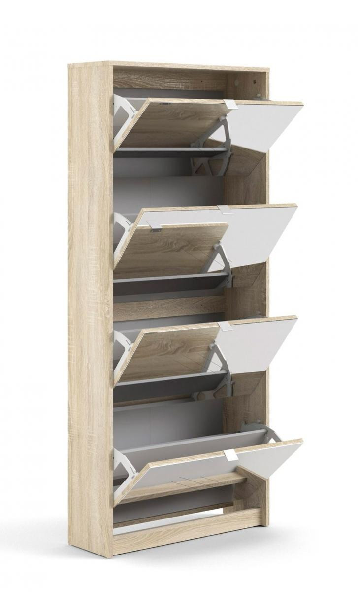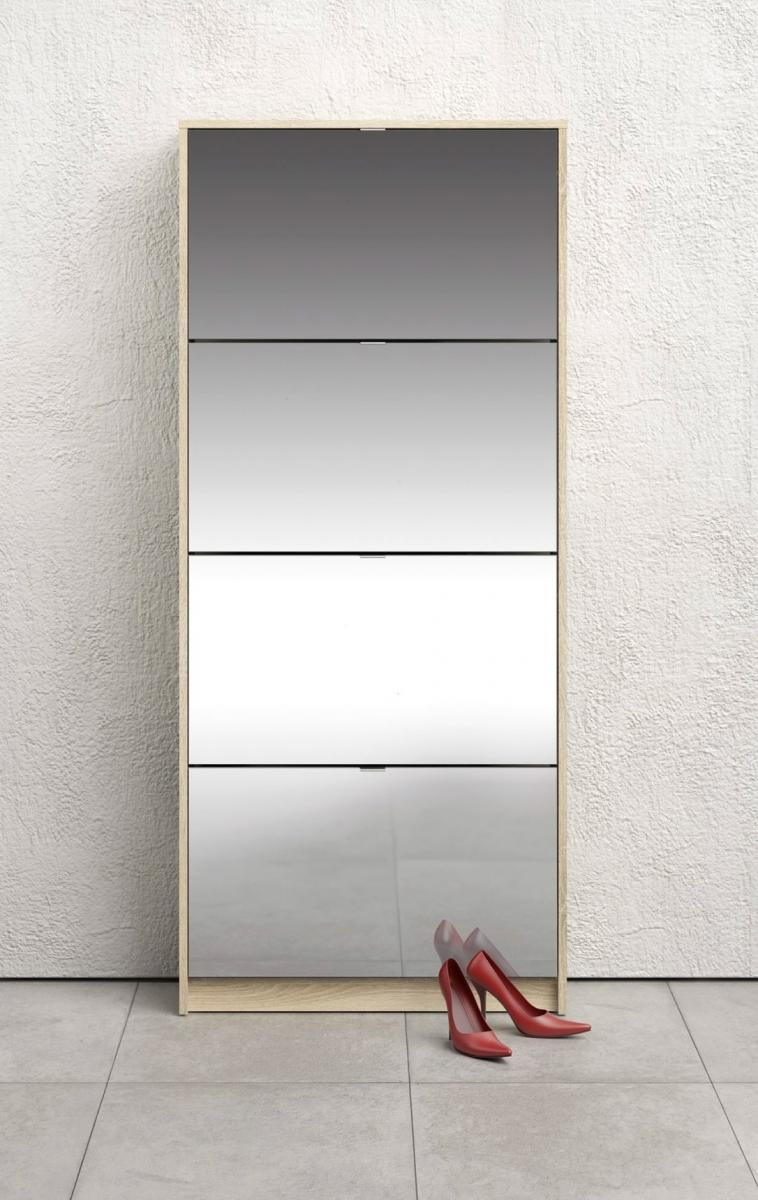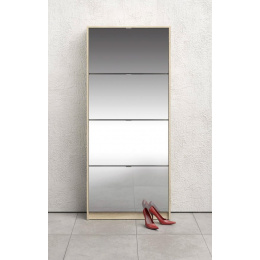 Po prostorném botníku touží každý milovník bot i početná rodina. Boty se hromadí v předsíni, vzniká chaos a zakopávání o boty je na denním pořádku. Zachraňte svou předsíň před nepořádkem a pořiďte si botník Flap s výklopnými dvířky. Vaše předsíň bude uklizená a zakopávání o boty se stane minulostí. Díky svému provedení pojme botník Flap opravdu velké množství bot. Do každé výklopné přihrádky můžete ukládat boty ve dvou řadách. Botník je vyrobený z lamina, které je odolné a snadné na údržbu a na dvířkách botníku je zrcadlo, které je v předsíni nepostradatelné při úpravě zevnějšku před odchodem z domu. Zracadla také každou tmavou předsíň prosvětlí a opticky zvětší. Botník je dodávaný v demontu a součástí balení je montážní návod včetně všech spojovacích prvků. Cena je uvedena za botník Flap se čtyřmi výklopnými přihrádkami. Vyobrazené doplňky a dekorace nejsou v ceně.