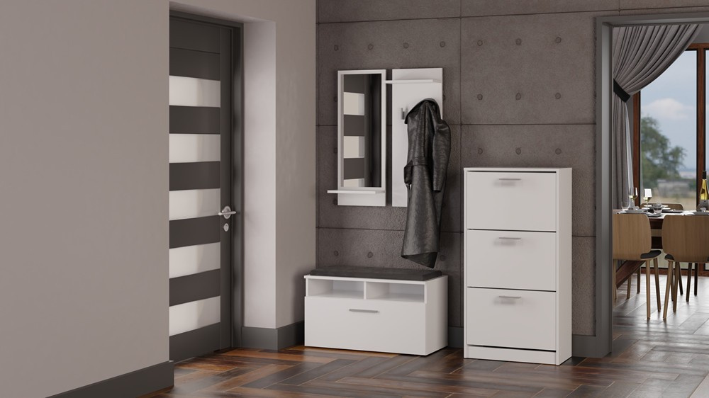 Nadčasový botník Pura s praktickými výklopnými dvířky je ideální volbou do každé předsíně. Pečlivé zpracování a minimalistický design dodají vaší předsíni styl i funkční úložný prostor. Nábytek je vyroben z vysoce kvalitního lamina, které je snadno udržovatelné a odolné proti oděru, dlouhou životnost nábytku zajišťují hrany zakončené ABS materiálem.