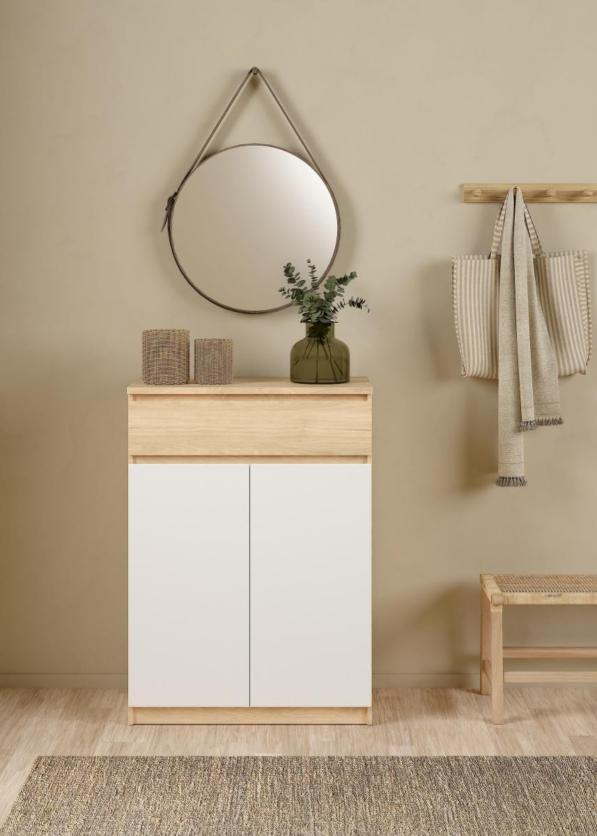 Nadčasový úložný systém, který poskytuje prostor a funkčnost. Řada Simplicity vyrobená z kvalitního lamina nabízí noční stolky, postele, komody, botníky a další úložné prostory v široké škále barevných variant a velikostí. Zboží je dodáváno v demontu. Součástí je schematický návod na montáž včetně všech potřebných spojovacích prvků. Vyobrazené doplňky a dekorace nejsou v ceně.