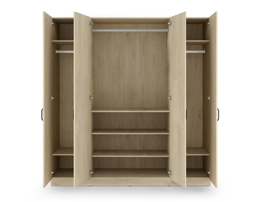 Ez a szekrény klasszikus nyitást kínál, amely nemcsak praktikus, hanem könnyű hozzáférést is biztosít a dolgaidhoz. 200 cm szélességgel, 210 cm magassággal és 60,5 cm mélységgel elegendő helyet biztosít ruhák, ágyneműk és egyéb személyes tárgyak tárolására. A tükör hiánya az ajtón növeli a design egyszerűségét és tisztaságát, amit különösen azok értékelnek, akik a minimalista stílust részesítik előnyben.