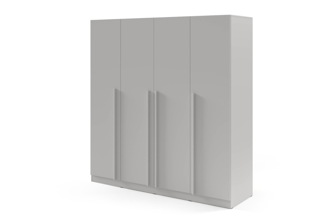 A BRAGA 1 DC szekrény négy ajtajával elegendő helyet kínál az összes ruhája, kiegészítője és egyéb személyes tárgyai tárolására. 200 cm szélességgel, 210 cm magassággal és 60,5 cm mélységgel elegendő helyet biztosít a ruhásszekrényének az igényei szerinti megszervezéséhez.