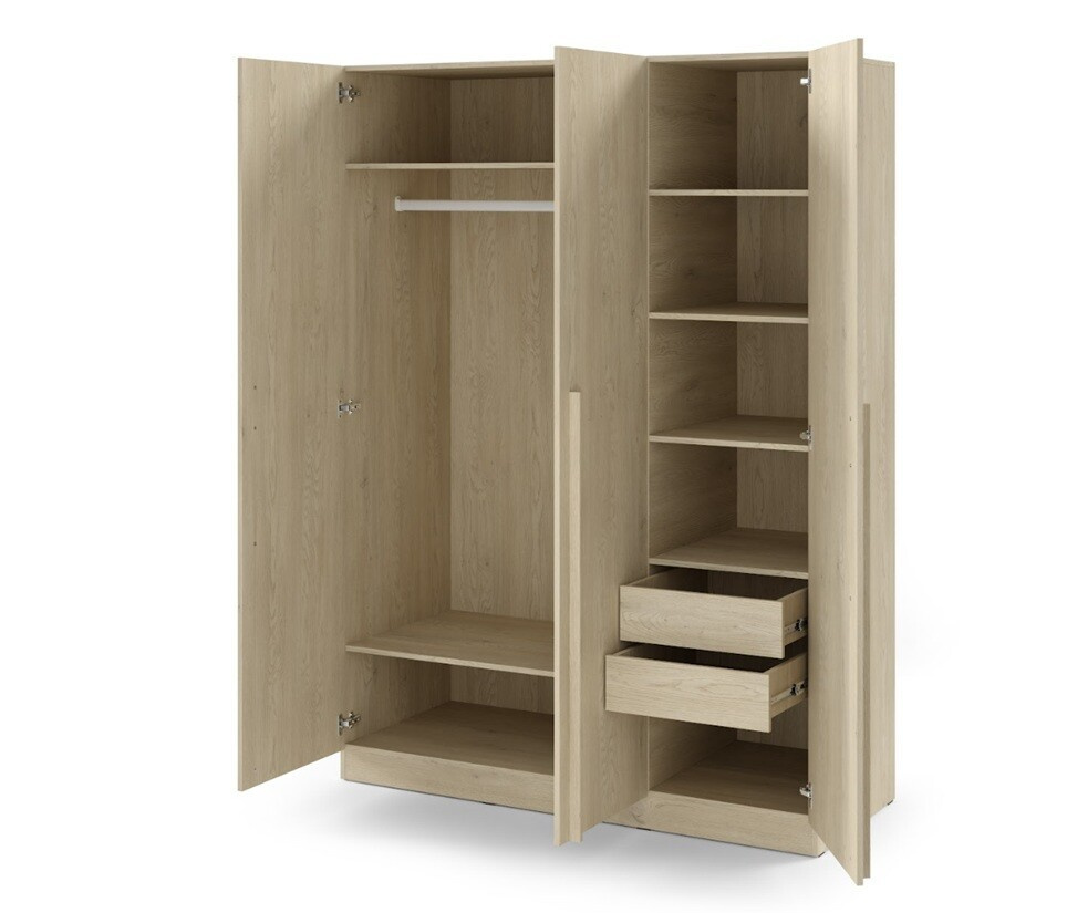 A BRAGA 2 DC szekrény 3 ajtósak, ami elegendő helyet biztosít az összes ruházat és egyéb személyes tárgy tárolására. 150 cm szélességgel, 210 cm magassággal és 60,5 cm mélységgel ez a szekrény bőséges tárolóhelyet kínál, amely a legigényesebb igényeket is kielégíti.