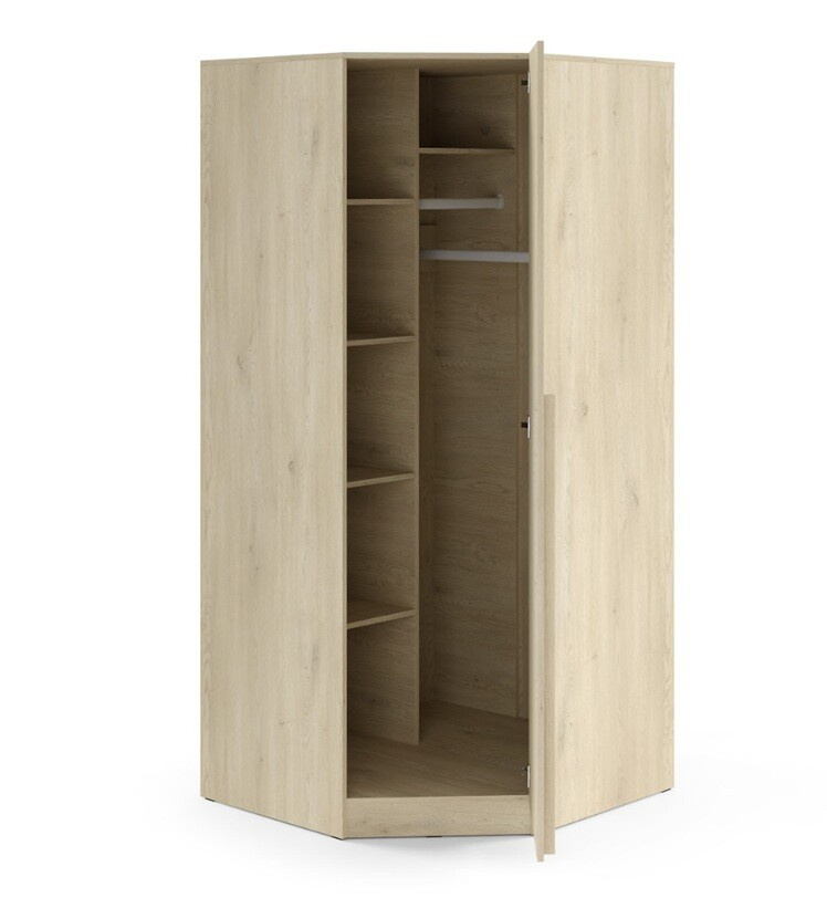 Ez a sarokszekrény ideális hálószobákba, nappalikba vagy előszobákba. Elegendő helyet kínál ruhák, ágyneműk vagy más személyes tárgyak tárolására. Univerzális kialakítása és praktikus méretei miatt kiváló választás bármilyen térbe.