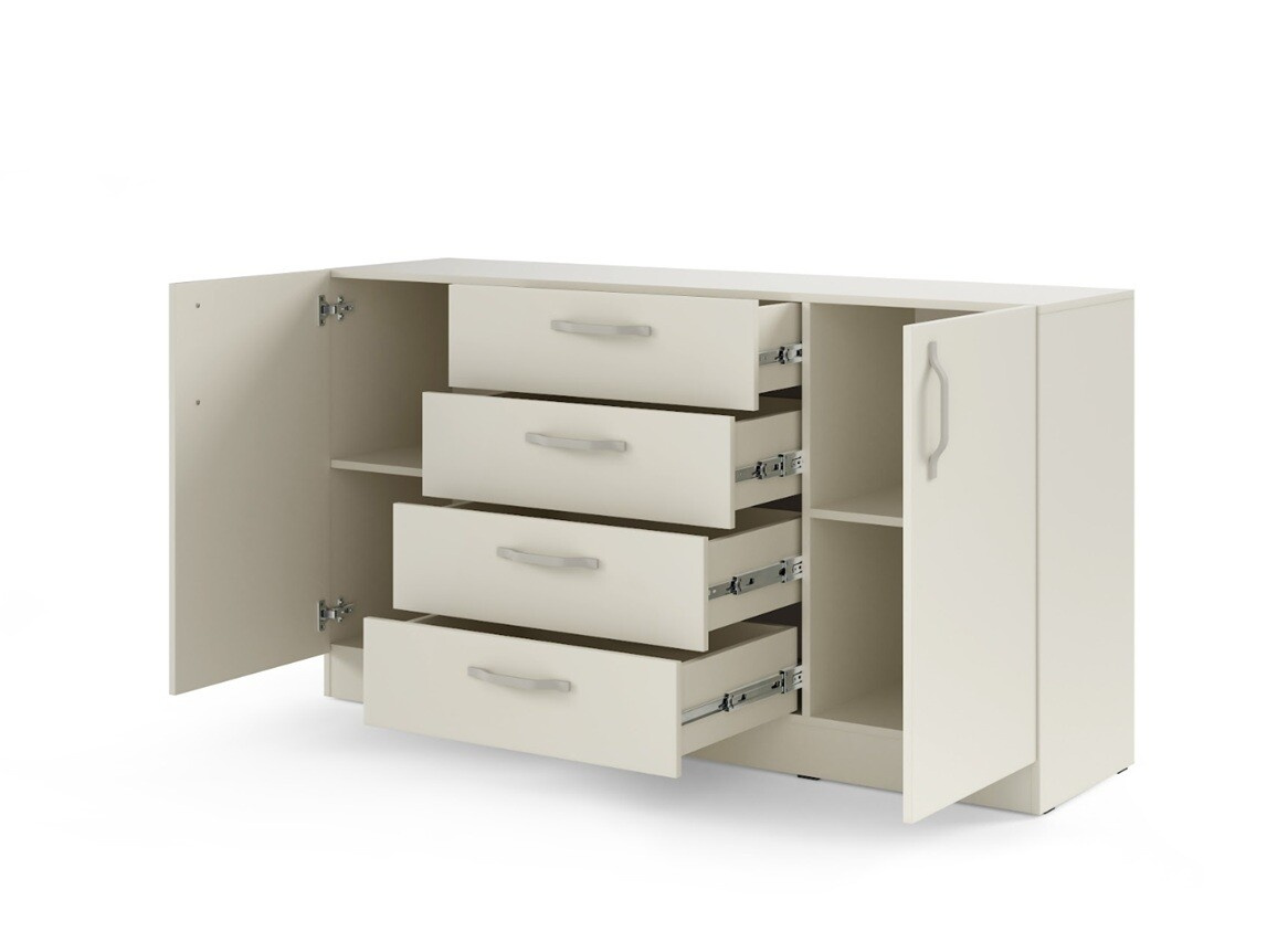 A 156 cm szélességgel, 85 cm magassággal és 40 cm mélységgel a BRAGA BRK1 komód elegendő tárolóhelyet kínál minden igényének. A kombinált szerkezet lehetővé teszi a dolgok hatékony elrendezését, legyen szó ruházatról, dokumentumokról vagy dekoratív tárgyakról. A gondosan megtervezett kialakításnak köszönhetően a komód nemcsak praktikus, hanem esztétikailag is vonzó.