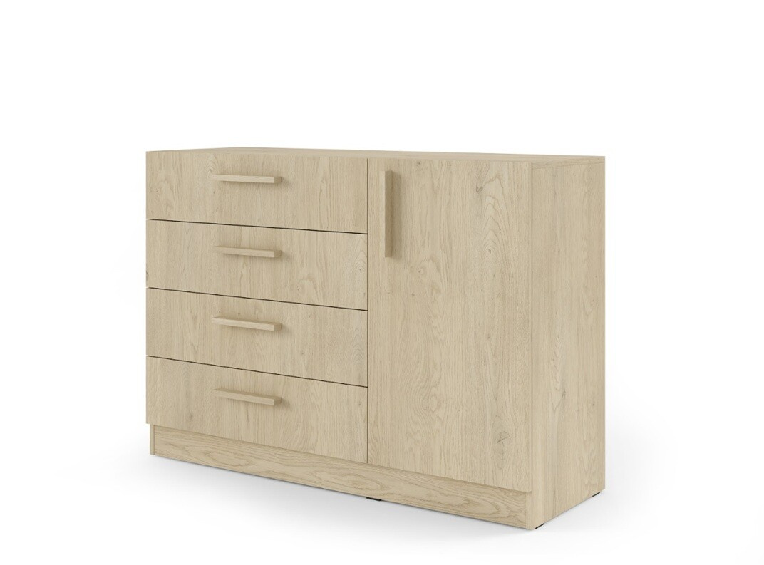 Ez a kombinált komód elegendő tárolóhelyet kínál minden igényének. Szélessége 121 cm, magassága 85 cm és mélysége 40 cm, elegendő helyet biztosít ruhák, dokumentumok vagy más személyes tárgyak tárolására. Átgondolt kialakítása magában foglalja mind a fiókokat, mind a polcokat, ami lehetővé teszi a hatékony szervezést és a könnyű hozzáférést az összes tárolt tárgyhoz.