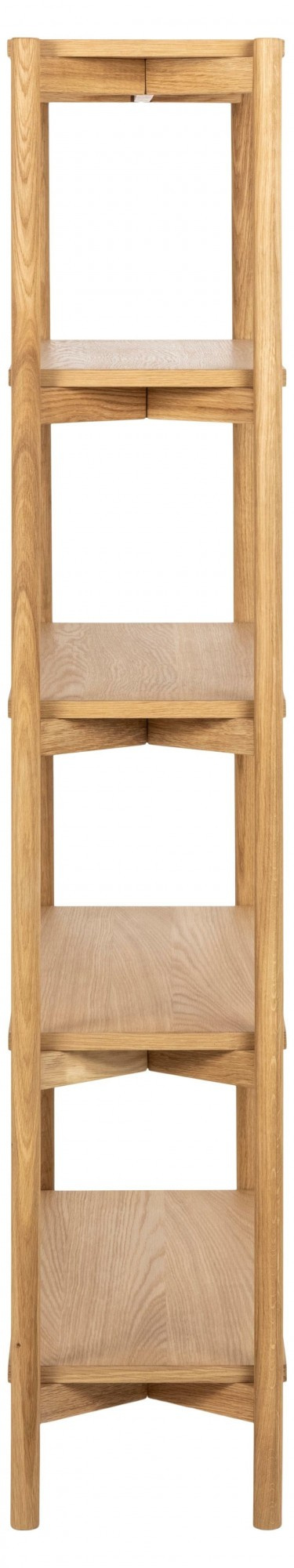 Braidwood polc olajozott tölgyfából. 4 polca van. Stabil és tágas, ideálisan illik a hálószobába vagy a nappaliba. Tökéletes a modern és skandináv stílusú belső terekhez. Braidwood polc, keret és alap olajozott tölgy, polcok: MDF lap és olajozott tölgy furnér Méretek: 86x30x160 cm Súly: 27,8 kg