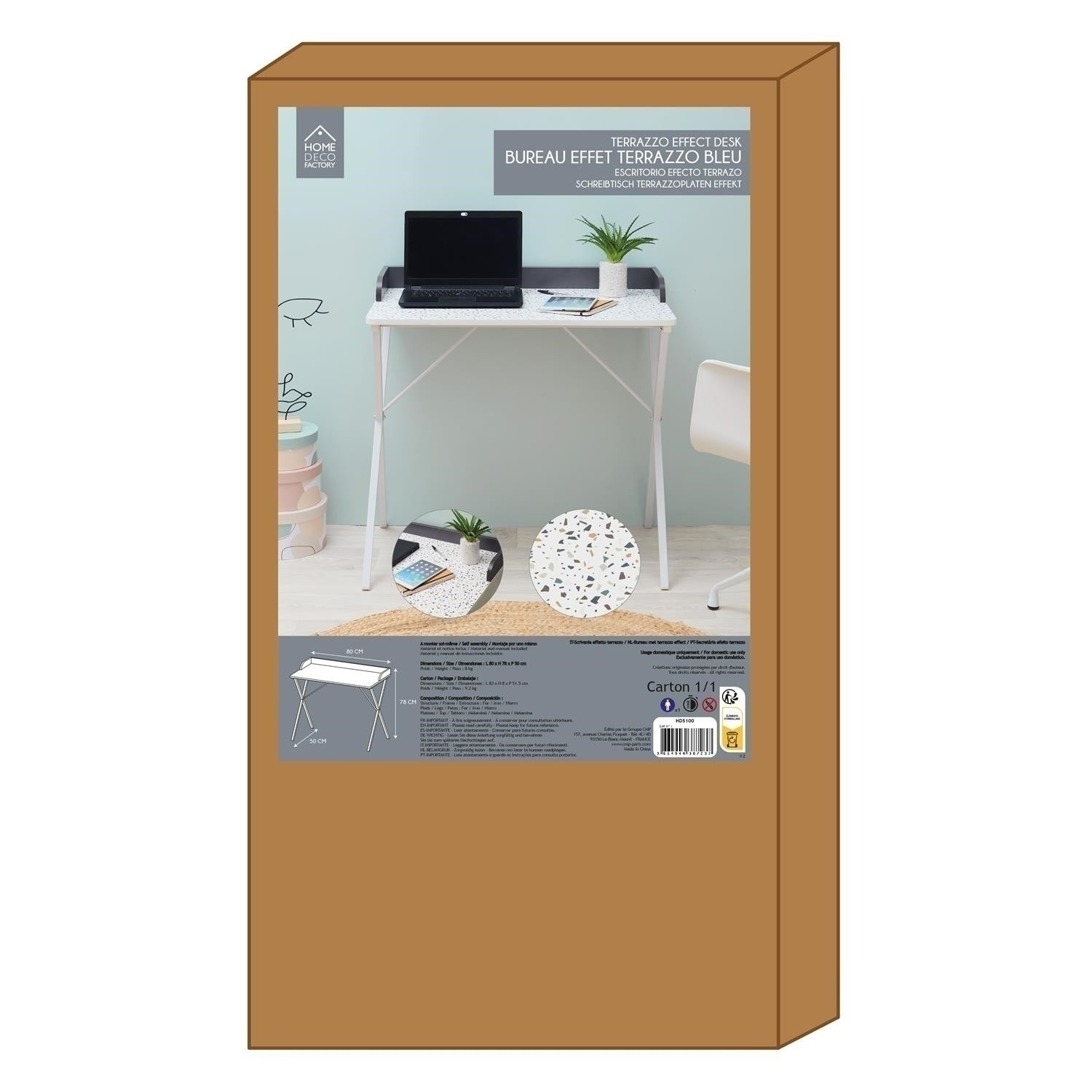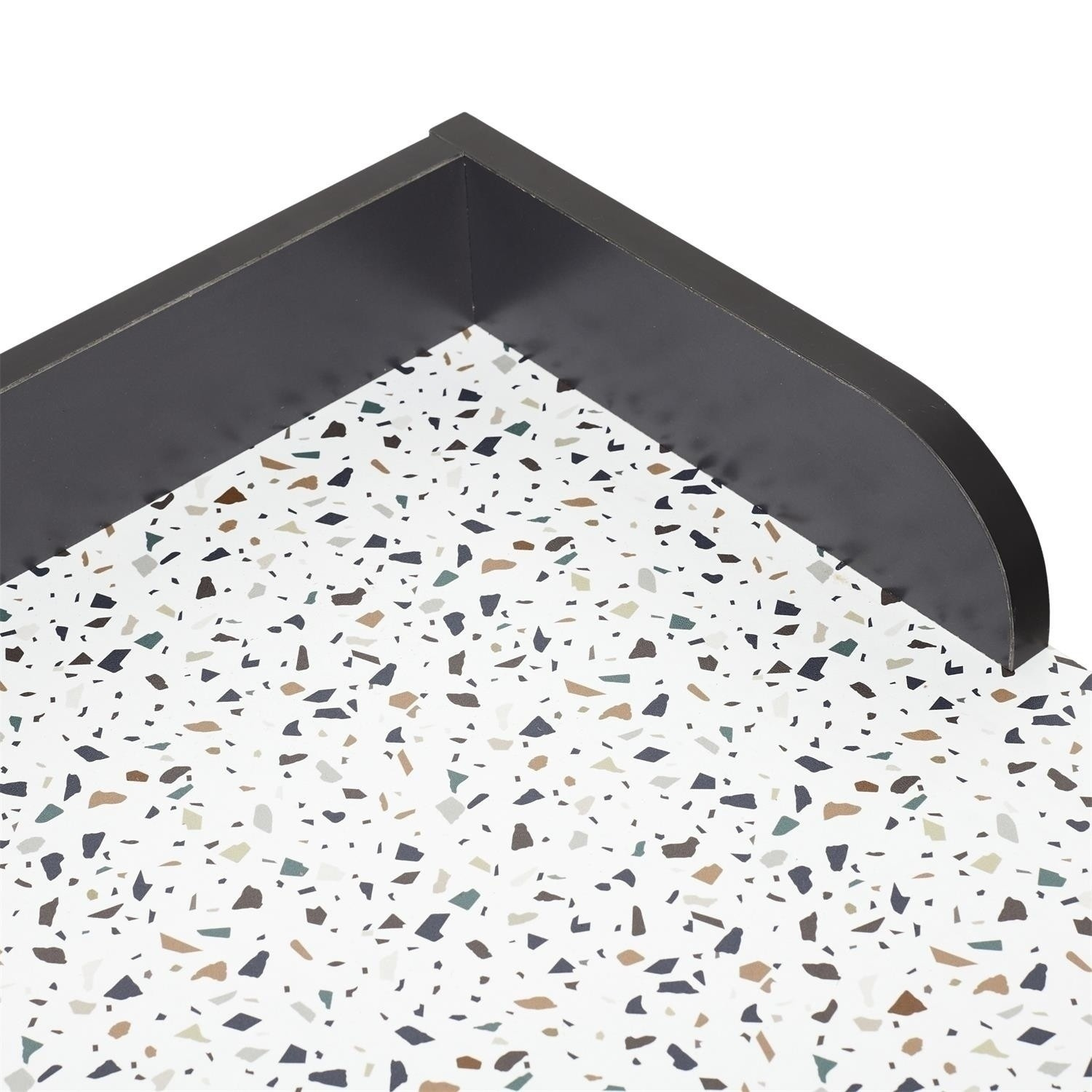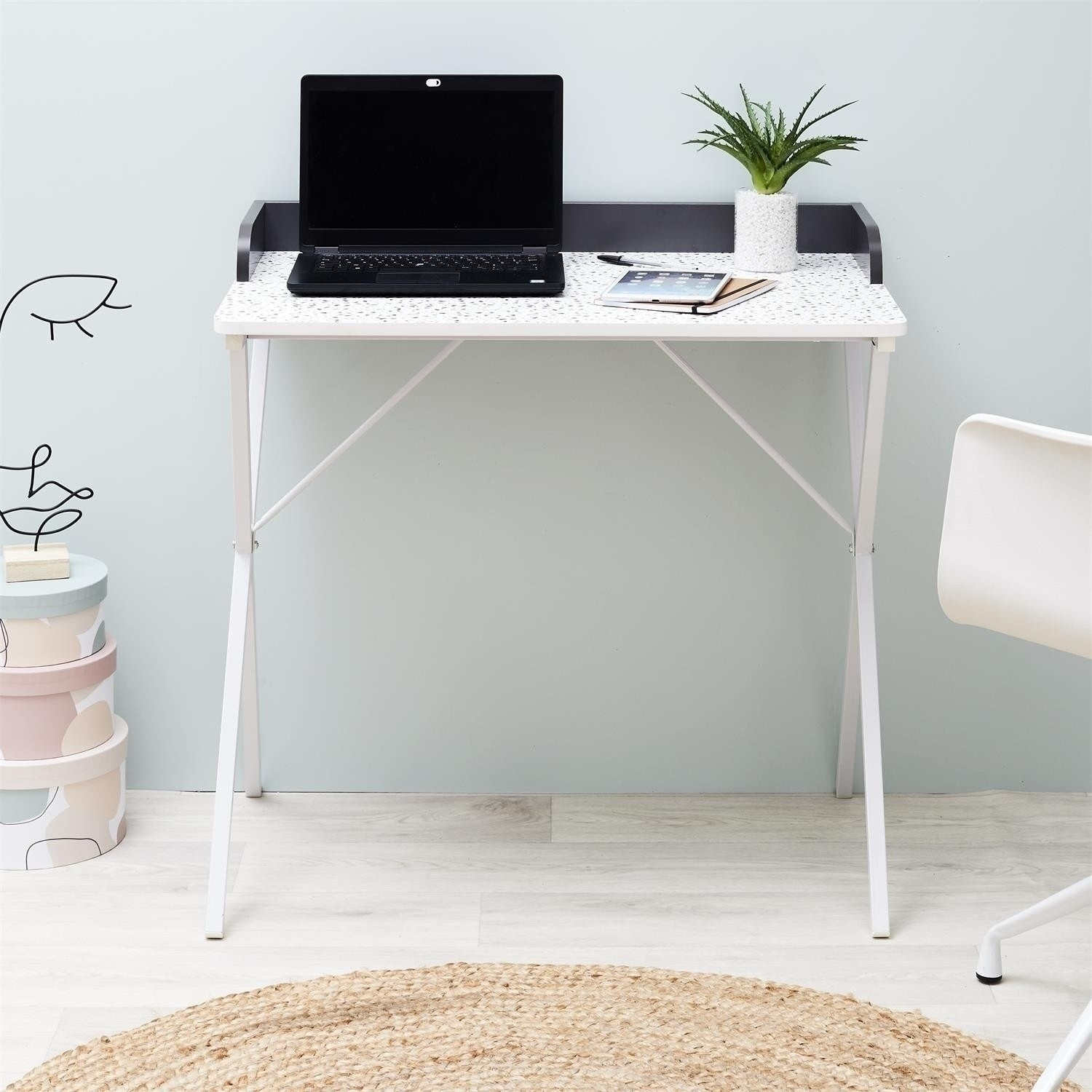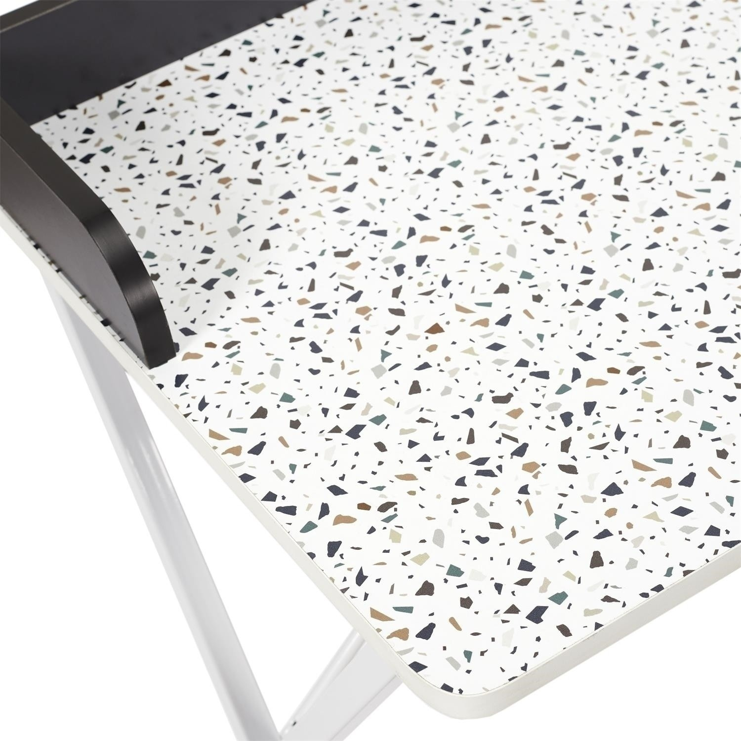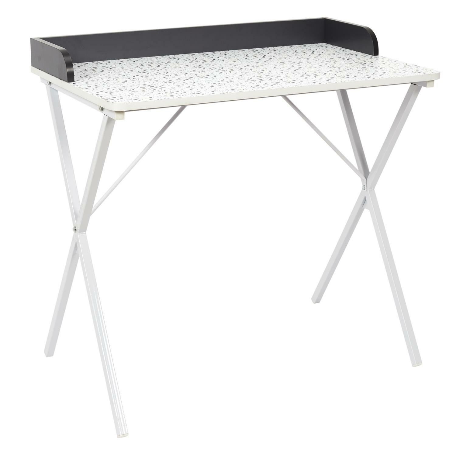 Dolgozz mosollyal a Brice asztalnál terrazzo mintával. Elegáns, modern dizájnja a jellegzetes terrazzo mintával stílust és frissességet kölcsönöz minden belső térnek. Masszív szerkezet és tágas asztallap biztosítja a kényelmet és a funkcionalitást, ideálisan illeszkedik irodába, otthoni dolgozószobába vagy munkaterületre. Termék hossza: 84,4 cm Termék magassága: 50 cm Termék mélysége: 80 cm Asztallap anyaga: Fa - MDF Lábak anyaga: Fém - vas