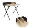A Biuro Brico egy elegáns íróasztal ipari jelleggel. Az íróasztal tökéletesen megfelel azoknak, akik értékelik a rendezett munkaterületet. Az asztal két rekesszel van felszerelve, amelyekben iratgyűjtőket vagy öntapadós jegyzettömböket tárolhatunk. A táblán egy fekete lap is található, amely megvédi tárgyainkat attól, hogy leessenek az asztal mögé. Tökéletesen alkalmazható irodában, dolgozószobában, valamint ifjúsági szobában is. Az asztal egyszerű szerkezettel rendelkezik. A laminált MDF lap egy fém, stílusos alapra lett helyezve, amely bájt kölcsönöz az egésznek. A csomag méretei 8 x 51,4 x 93 cm