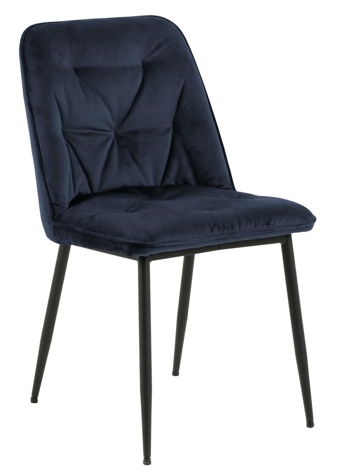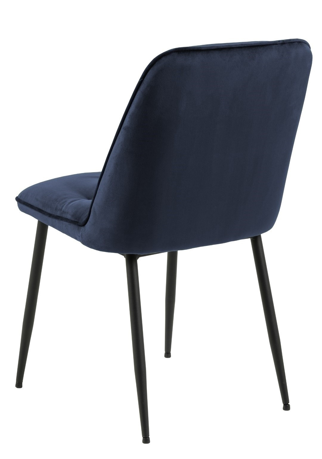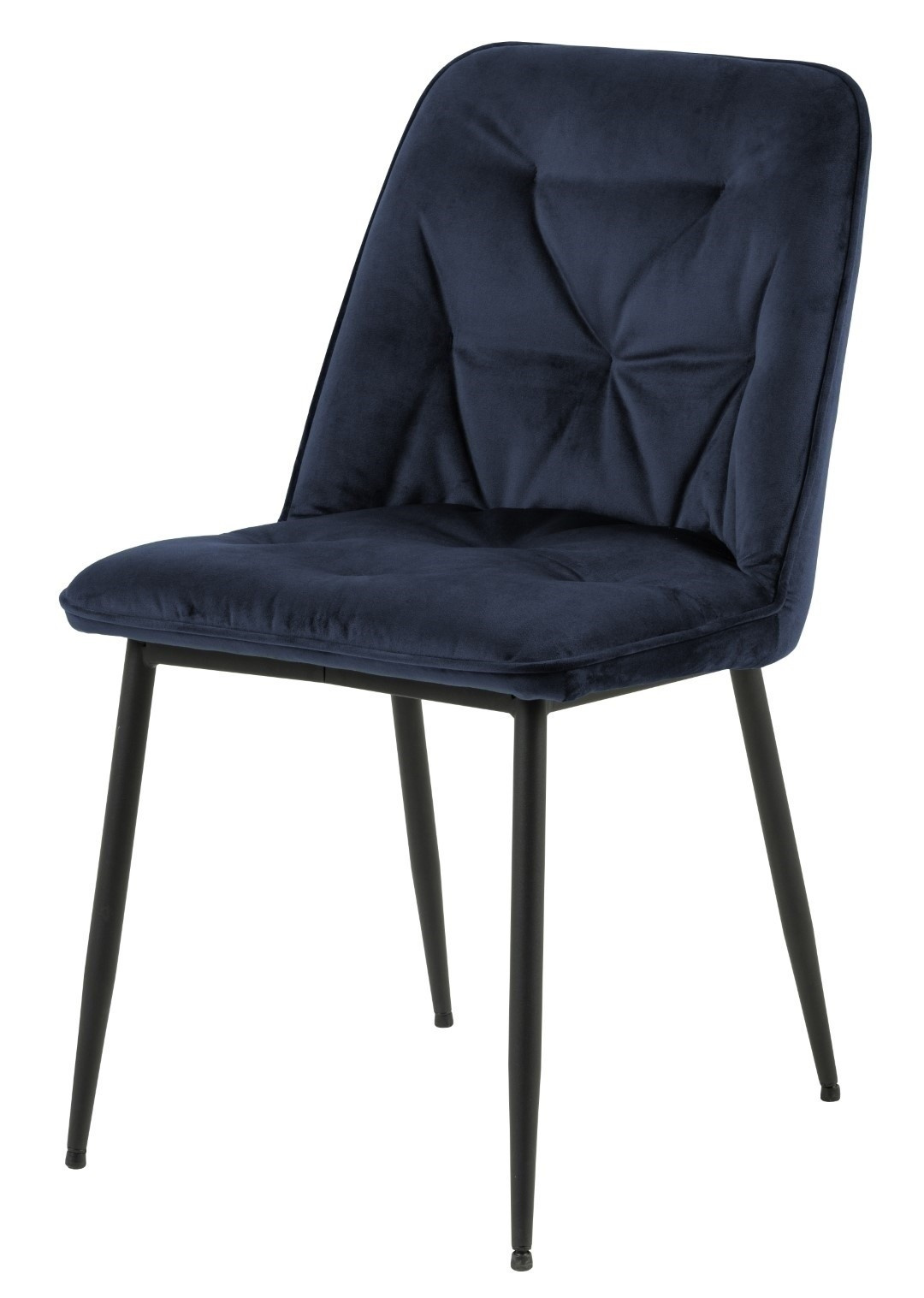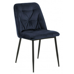 A Brooke standard szék puha bársony szövettel kárpitozott, Vic fabric midnight blue 77AC FR. A szék kényelmes háttámlával rendelkezik, amelyet steppelés díszít, ami stílust kölcsönöz neki. A szék alapja fekete porszórt festékkel lakkozott fém lábakból áll. Maximális terhelés: 120 kg. Háttámla magassága: 36 cm Ülőfelület szélessége: 50 cm Ülőfelület mélysége: 40 cm Kartonok száma: 1 Kartonok méretei: 57x52x61 cm Kartonok súlya: 8 kg