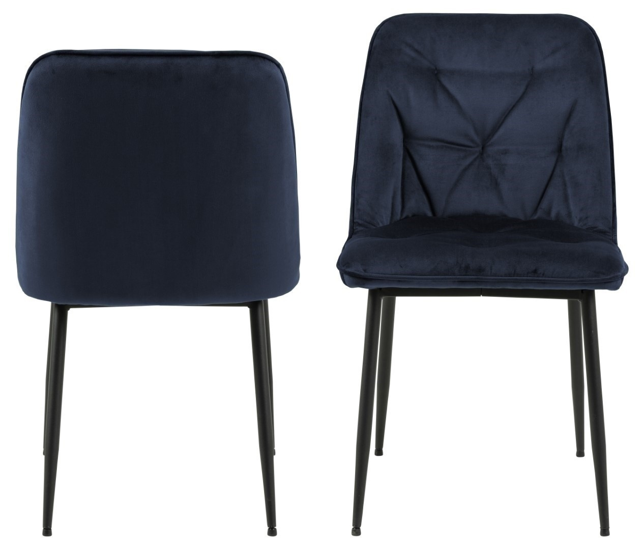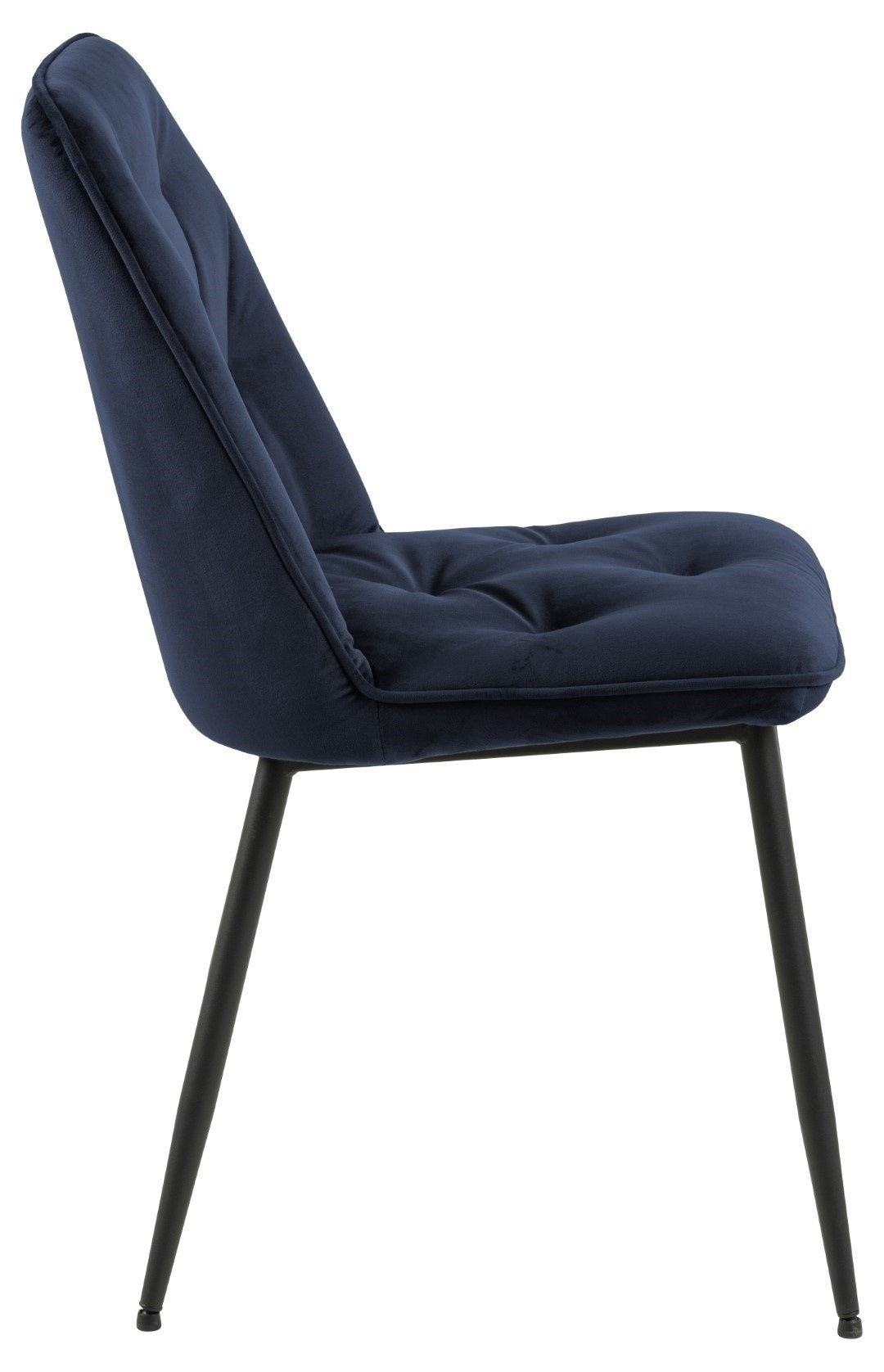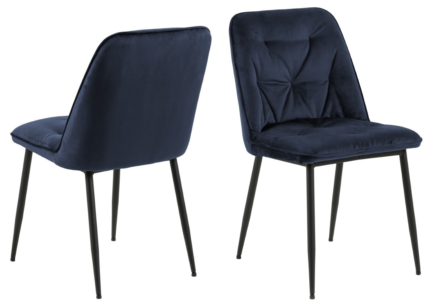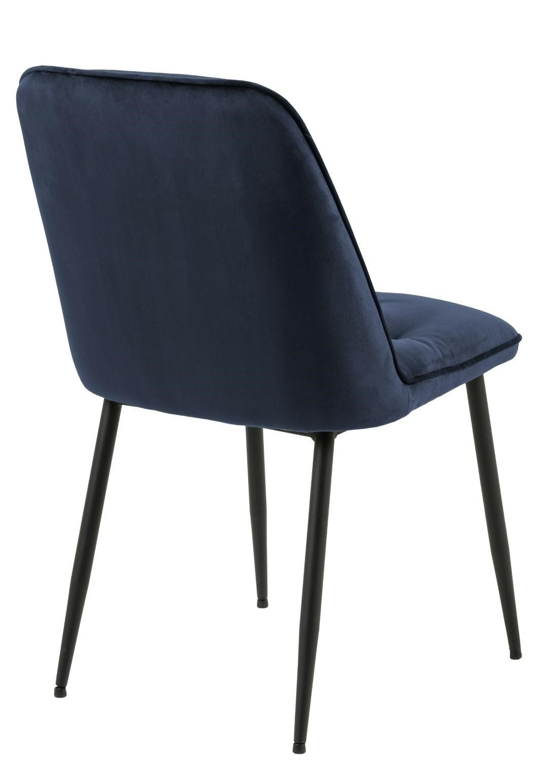 A Brooke standard szék puha bársony szövettel kárpitozott, Vic fabric midnight blue 77AC FR. A szék kényelmes háttámlával rendelkezik, amelyet steppelés díszít, ami stílust kölcsönöz neki. A szék alapja fekete porszórt festékkel lakkozott fém lábakból áll. Maximális terhelés: 120 kg. Háttámla magassága: 36 cm Ülőfelület szélessége: 50 cm Ülőfelület mélysége: 40 cm Kartonok száma: 1 Kartonok méretei: 57x52x61 cm Kartonok súlya: 8 kg