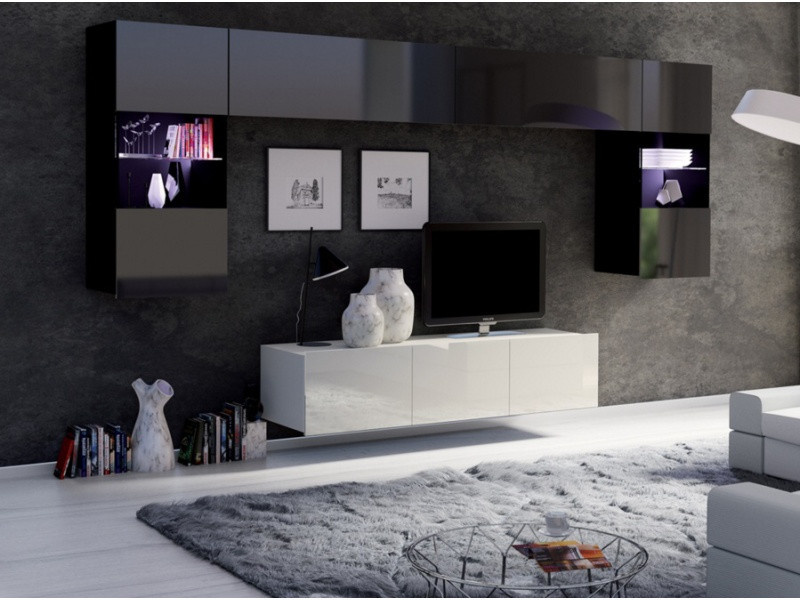 Systém CALABRINI je moderní nábytkový systém. Skříně jsou vyrobeny ze 16 mm vrstvené desky a dvířka jsou ve vysokém lesku. Hrany jsou odolnější vůči každodennímu používání díky použití PVC dýhy. Stěna je vhodná pro všechny moderní a minimalistické interiéry. Eleganci také dodává možnost LED osvětlení, které není zahrnuto v ceně. Lze zakoupit také jednotlivě a vytvořit si tak vlastní sestavu hodící se do vašeho interiéru. TV komodu si můžete buď pověsit nebo nachat stát na podlaze.