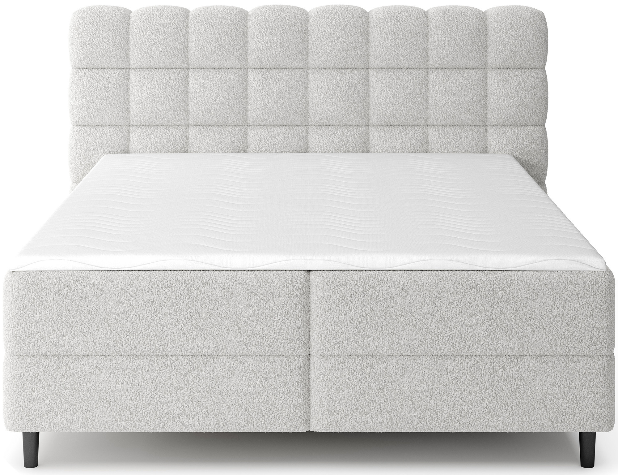 The Camma continental bed combines modern design, functionality and outstanding sleeping comfort, making it the perfect choice for an elegant and practical bedroom; available in three sizes – 140x200 cm, 160x200 cm and 180x200 cm – it adapts perfectly to both space and individual needs, while its solid construction with a total height of 102 cm and a seat height of 56 cm ensures everyday comfort; the bed has a depth of 222 cm, and the width depends on the chosen model – 162 cm, 182 cm or 202 cm – giving it a stable and impressive look that adds a luxurious touch to any interior; upholstered in a high-quality, soft-touch fabric with a stylishly quilted headboard, it combines modern elegance with comfortable support for reading or relaxing; a practical storage box provides space for bedding and helps keep the bedroom tidy, making the Camma bed not only comfortable but also highly functional; the design is complemented by 10 cm black wooden legs that add visual lightness and make cleaning underneath the bed easier; the Camma model is the ideal choice for those who value modern style, elegance, durability and comfort, ensuring healthy and restful sleep every night.