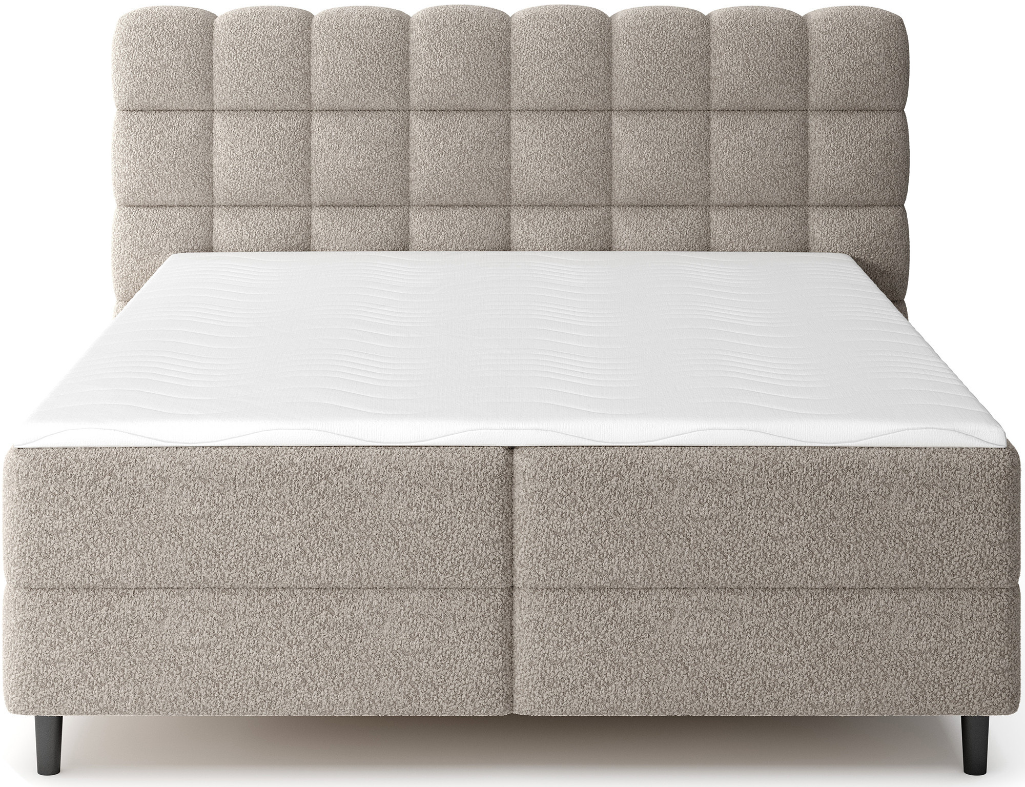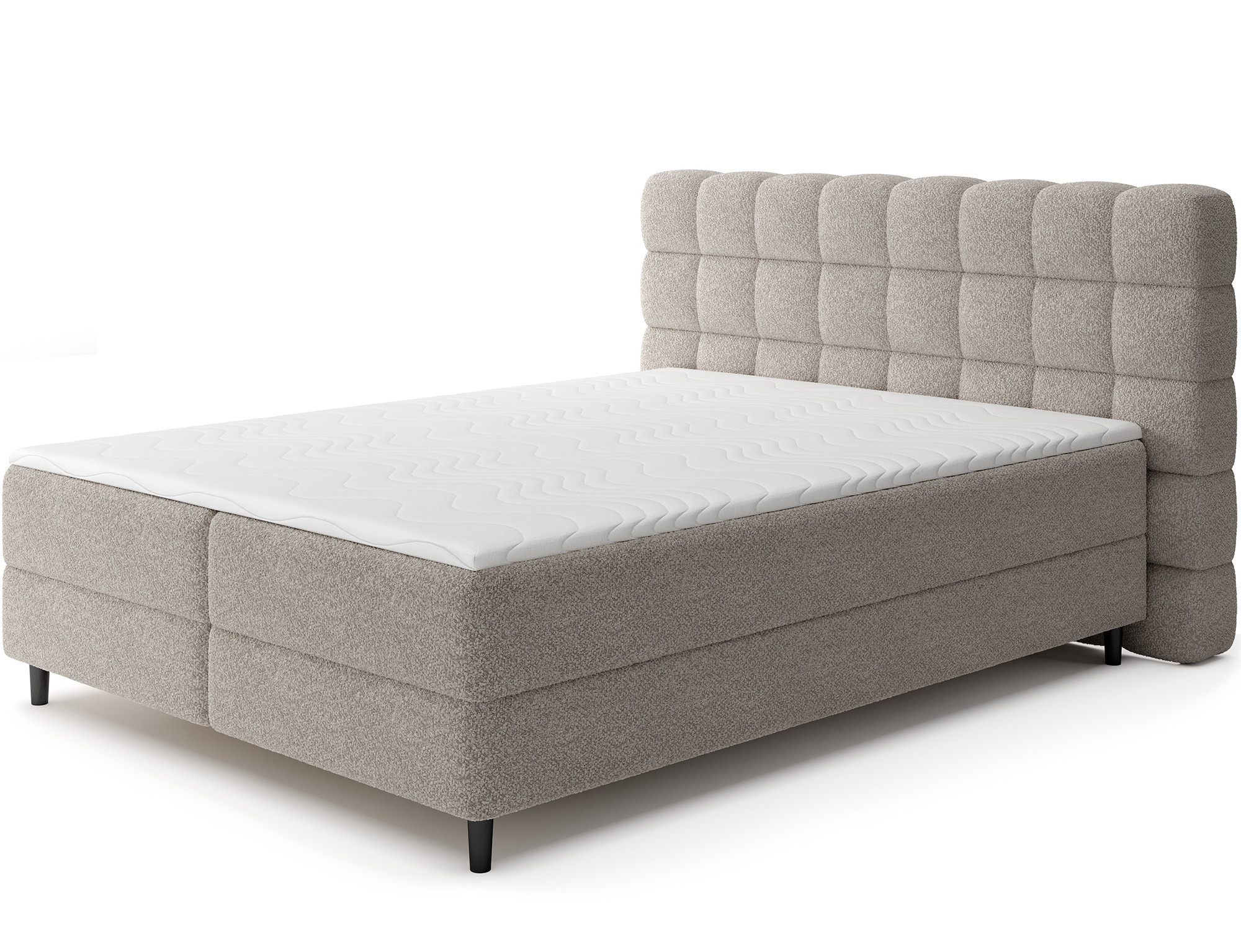 The Camma continental bed combines modern design, functionality and outstanding sleeping comfort, making it the perfect choice for an elegant and practical bedroom; available in three sizes – 140x200 cm, 160x200 cm and 180x200 cm – it adapts perfectly to both space and individual needs, while its solid construction with a total height of 102 cm and a seat height of 56 cm ensures everyday comfort; the bed has a depth of 222 cm, and the width depends on the chosen model – 162 cm, 182 cm or 202 cm – giving it a stable and impressive look that adds a luxurious touch to any interior; upholstered in a high-quality, soft-touch fabric with a stylishly quilted headboard, it combines modern elegance with comfortable support for reading or relaxing; a practical storage box provides space for bedding and helps keep the bedroom tidy, making the Camma bed not only comfortable but also highly functional; the design is complemented by 10 cm black wooden legs that add visual lightness and make cleaning underneath the bed easier; the Camma model is the ideal choice for those who value modern style, elegance, durability and comfort, ensuring healthy and restful sleep every night.