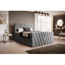 The Candice continental bed brings boldness to the bedroom with its upholstery available in many different colours from the ELTAP fabric collection. In addition, the product is available in 3 sizes of the sleeping surface: 140/160/180x200 centimetres. The Candice boxspring will surely be an attractive foundation for many bedrooms, as it is both stylish and comfortable. The upholstered back of this piece of furniture allows it to be put in various configurations, even in the middle of a room. Another advantage of our upholstered bed are the extremely comfortable mattresses included in the set.As a boxspring bed, Candice is equipped with a bottom mattress and a top mattress. The first one is filled with T25 foam and Bonnel springs. The hardness of the bottom mattress is H2/3 while the top mattress' hardness level is H3. In addition, the topper of this upholstered bed is double-sided and equipped with a zipper. This will surely make it easier to keep the mattress clean. Thanks to all these elements, the Candice continental bed is incredibly comfortable and looks beautiful in any interior.