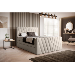 The Candice continental bed brings boldness to the bedroom with its upholstery available in many different colours from the ELTAP fabric collection. In addition, the product is available in 3 sizes of the sleeping surface: 140/160/180x200 centimetres. The Candice boxspring will surely be an attractive foundation for many bedrooms, as it is both stylish and comfortable. The upholstered back of this piece of furniture allows it to be put in various configurations, even in the middle of a room. Another advantage of our upholstered bed are the extremely comfortable mattresses included in the set.As a boxspring bed, Candice is equipped with a bottom mattress and a top mattress. The first one is filled with T25 foam and Bonnel springs. The hardness of the bottom mattress is H2/3 while the top mattress' hardness level is H3. In addition, the topper of this upholstered bed is double-sided and equipped with a zipper. This will surely make it easier to keep the mattress clean. Thanks to all these elements, the Candice continental bed is incredibly comfortable and looks beautiful in any interior.