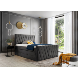 The Candice continental bed brings boldness to the bedroom with its upholstery available in many different colours from the ELTAP fabric collection. In addition, the product is available in 3 sizes of the sleeping surface: 140/160/180x200 centimetres. The Candice boxspring will surely be an attractive foundation for many bedrooms, as it is both stylish and comfortable. The upholstered back of this piece of furniture allows it to be put in various configurations, even in the middle of a room. Another advantage of our upholstered bed are the extremely comfortable mattresses included in the set.As a boxspring bed, Candice is equipped with a bottom mattress and a top mattress. The first one is filled with T25 foam and Bonnel springs. The hardness of the bottom mattress is H2/3 while the top mattress' hardness level is H3. In addition, the topper of this upholstered bed is double-sided and equipped with a zipper. This will surely make it easier to keep the mattress clean. Thanks to all these elements, the Candice continental bed is incredibly comfortable and looks beautiful in any interior.
