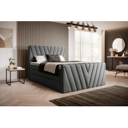 The Candice continental bed brings boldness to the bedroom with its upholstery available in many different colours from the ELTAP fabric collection. In addition, the product is available in 3 sizes of the sleeping surface: 140/160/180x200 centimetres. The Candice boxspring will surely be an attractive foundation for many bedrooms, as it is both stylish and comfortable. The upholstered back of this piece of furniture allows it to be put in various configurations, even in the middle of a room. Another advantage of our upholstered bed are the extremely comfortable mattresses included in the set.As a boxspring bed, Candice is equipped with a bottom mattress and a top mattress. The first one is filled with T25 foam and Bonnel springs. The hardness of the bottom mattress is H2/3 while the top mattress' hardness level is H3. In addition, the topper of this upholstered bed is double-sided and equipped with a zipper. This will surely make it easier to keep the mattress clean. Thanks to all these elements, the Candice continental bed is incredibly comfortable and looks beautiful in any interior.