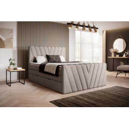 The Candice continental bed brings boldness to the bedroom with its upholstery available in many different colours from the ELTAP fabric collection. In addition, the product is available in 3 sizes of the sleeping surface: 140/160/180x200 centimetres. The Candice boxspring will surely be an attractive foundation for many bedrooms, as it is both stylish and comfortable. The upholstered back of this piece of furniture allows it to be put in various configurations, even in the middle of a room. Another advantage of our upholstered bed are the extremely comfortable mattresses included in the set.As a boxspring bed, Candice is equipped with a bottom mattress and a top mattress. The first one is filled with T25 foam and Bonnel springs. The hardness of the bottom mattress is H2/3 while the top mattress' hardness level is H3. In addition, the topper of this upholstered bed is double-sided and equipped with a zipper. This will surely make it easier to keep the mattress clean. Thanks to all these elements, the Candice continental bed is incredibly comfortable and looks beautiful in any interior.