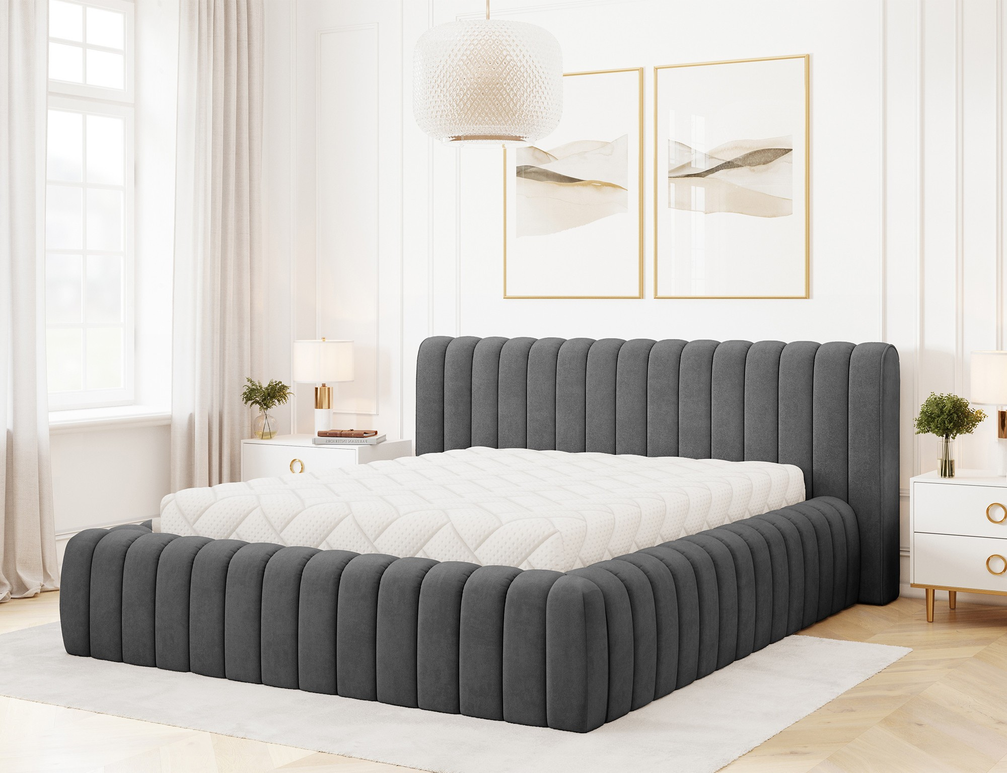 The Carilla bed is a modern and elegant piece of furniture available in three sizes: 140x200 cm, 160x200 cm, and 180x200 cm, perfectly aligning with contemporary interior trends. Its comfort is ensured by the high-quality polyurethane foam filling in the frame and backrest—T2130 and T2315—providing both durability and coziness. Its sturdy construction is supported by a metal frame with 36 slats, ensuring excellent mattress support and a restful sleep. The design is completed with a black glide, enhancing both stability and aesthetics.