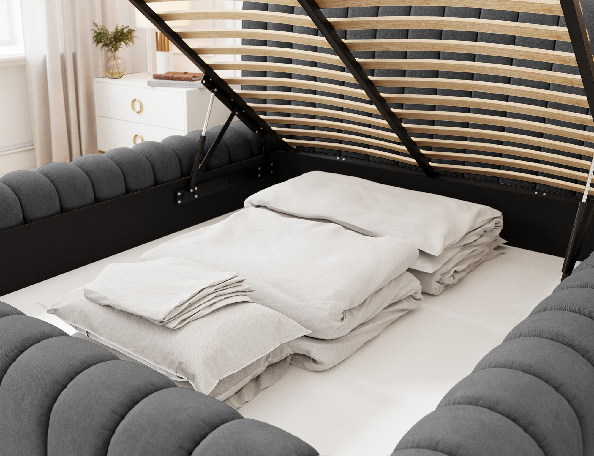 Carilla Bed + Metal Frame/Gas Lift/Storage 140x200 Sola 06 1